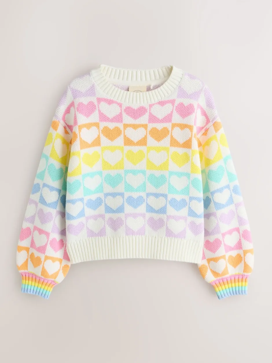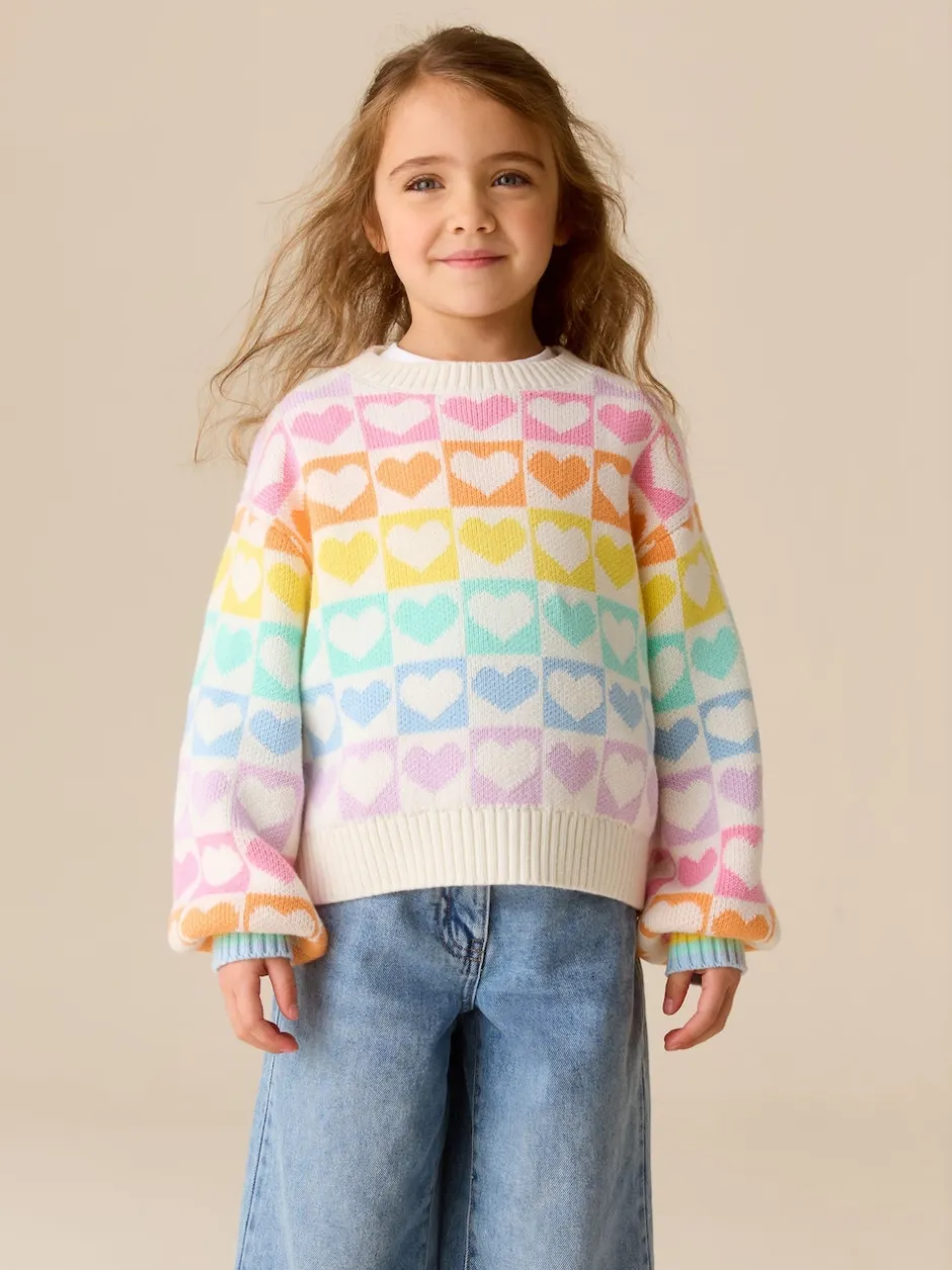 Little Bird by Jools Oliver Cœurs arc-en-ciel pastel – pull color block en maille Best