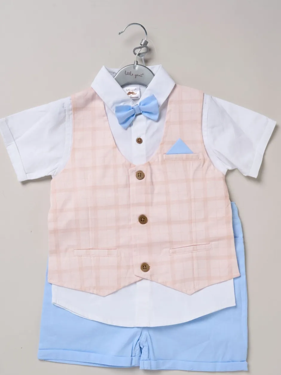 Little Gent Bleu – Chemise 100% coton avec gilet simulé et ensemble nœud papillon New