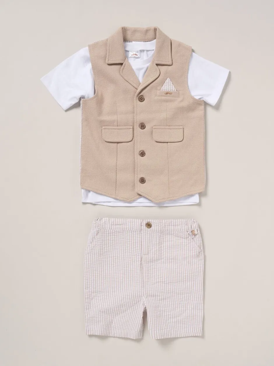 Little Gent Marron – Ensemble chemise, gilet et short 100% coton New