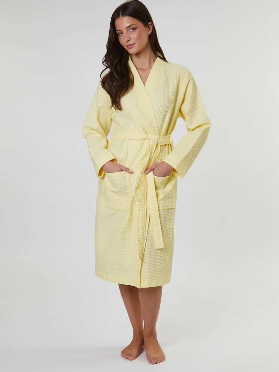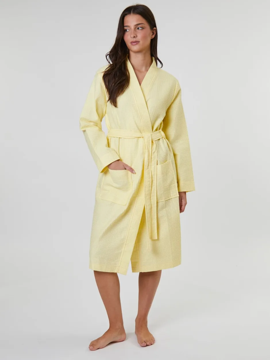 Loungeable – Peignoir gaufré 100% coton Jaune Hot