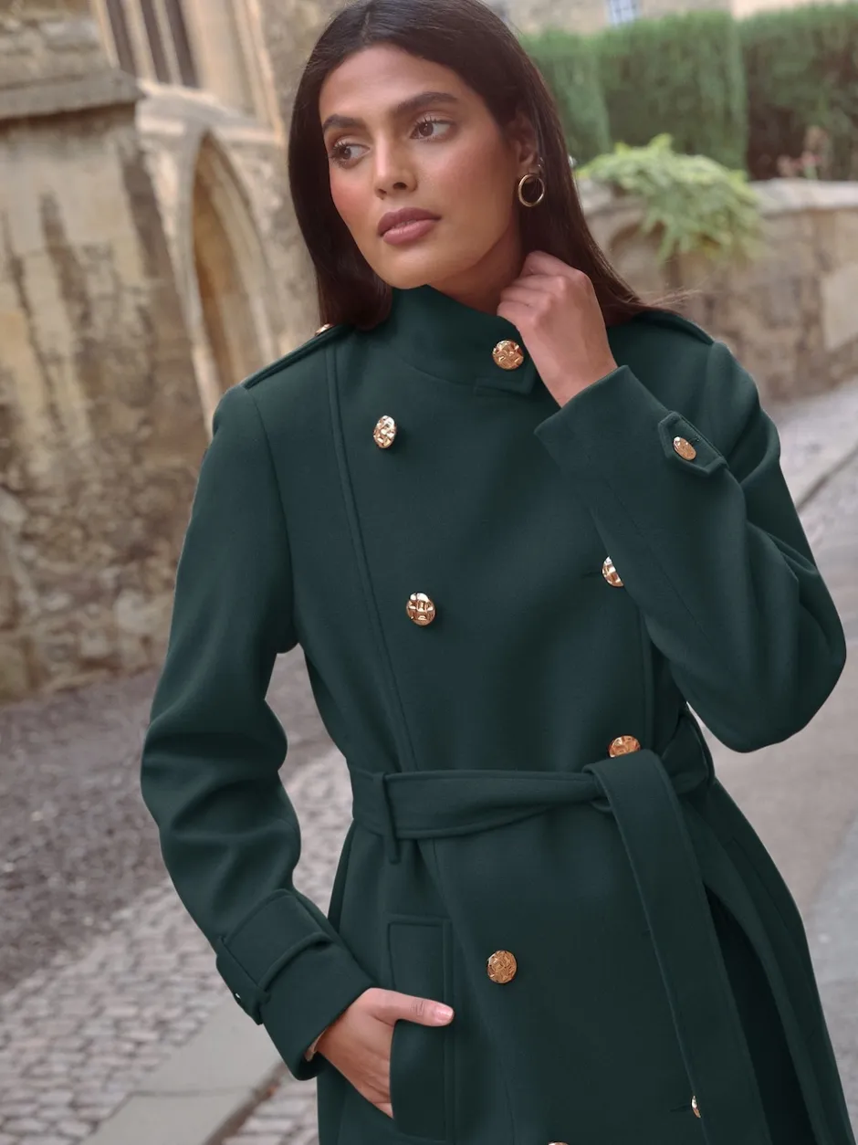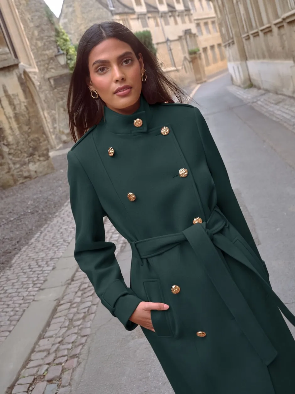 Love & Roses Bleu de sarcelle – Manteau enveloppant à col cheminée