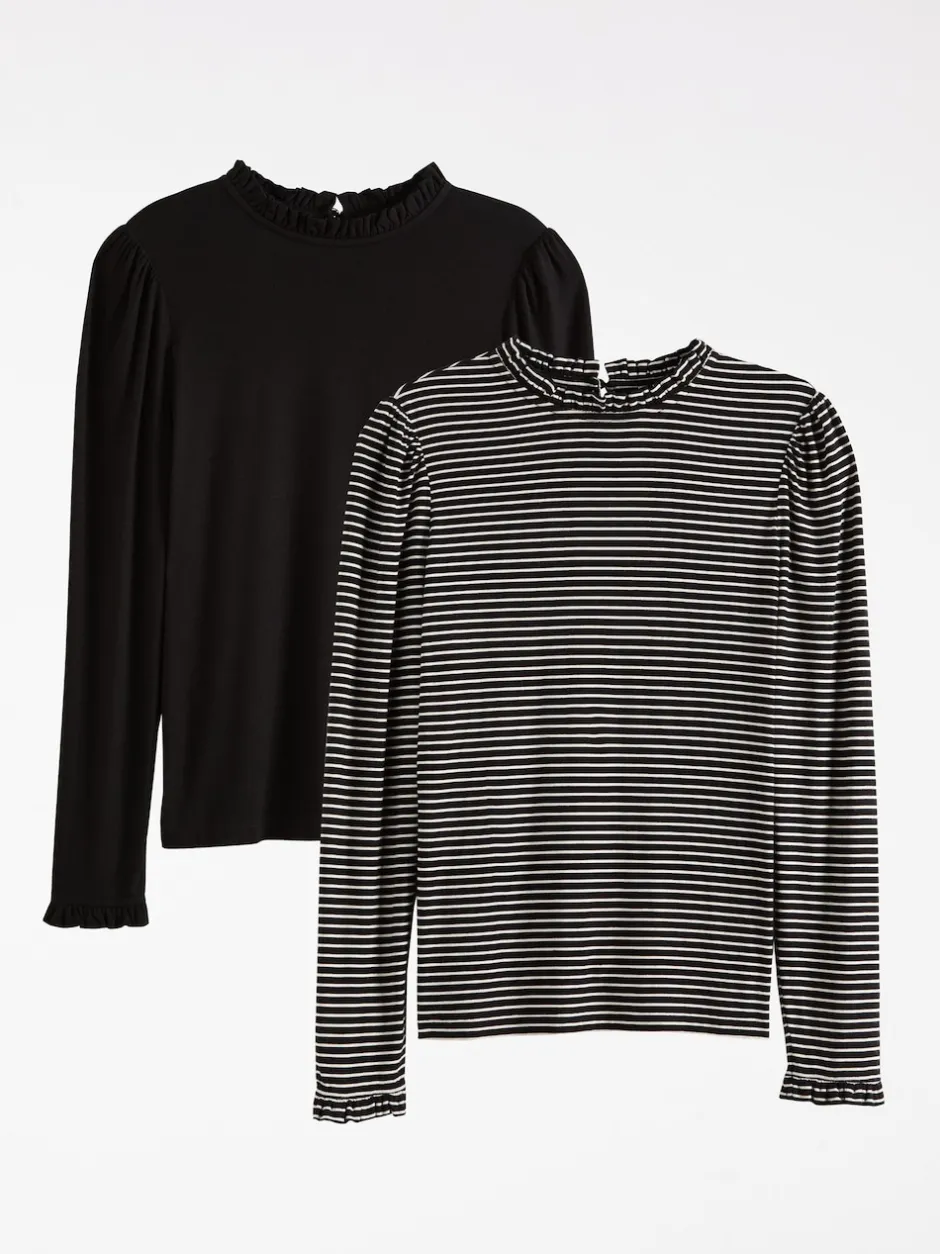 Love & Roses Noir et Rayure – haut en jersey à manches longues et col volanté Best
