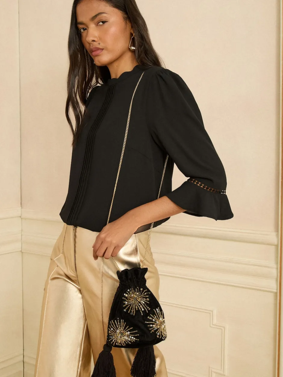 Love & Roses Noir – Pochette en velours avec ornements sequins Outlet