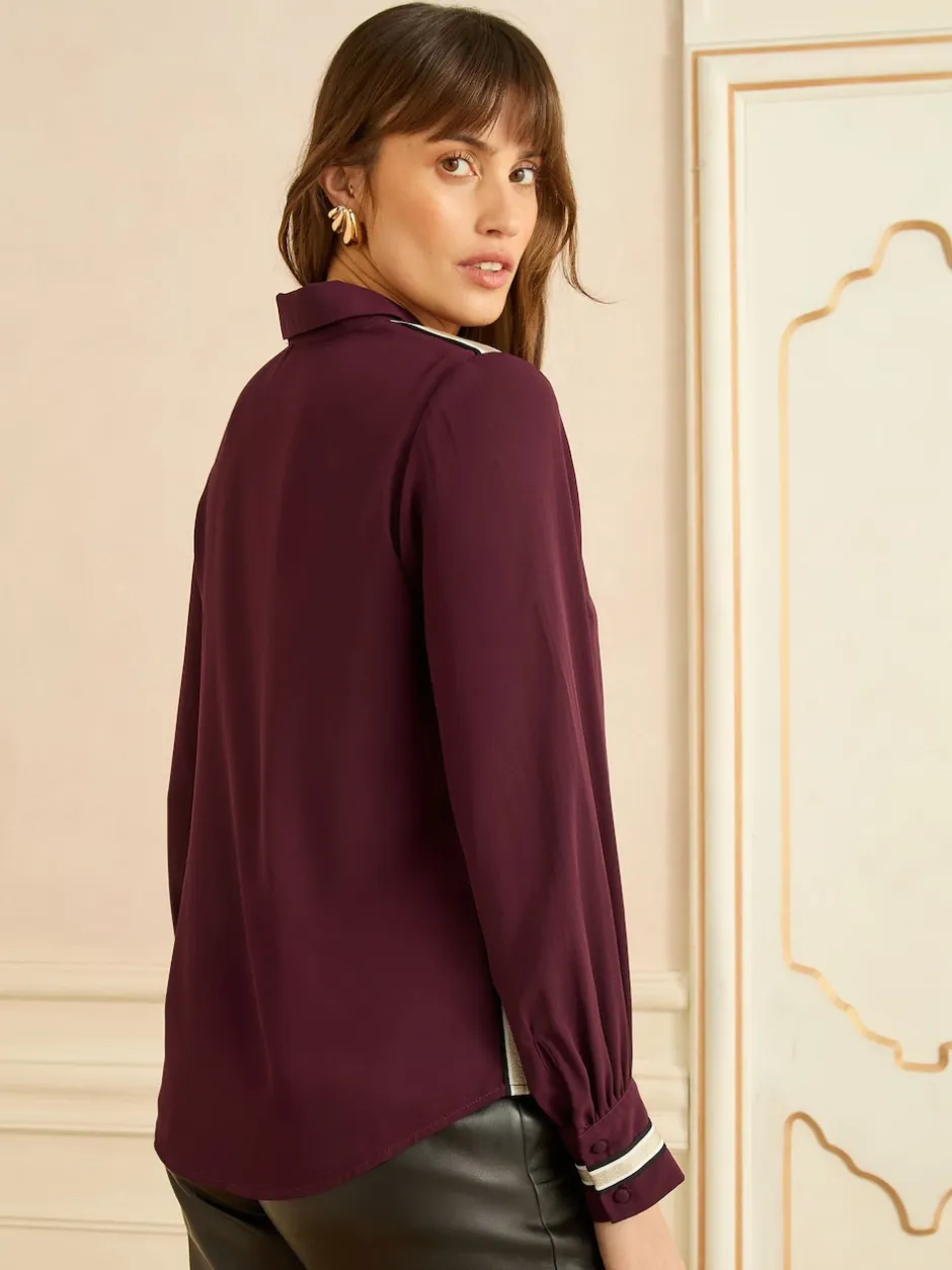 Love & Roses Rouge bordeaux métallisé – Chemise à manches longues boutonnée Clearance