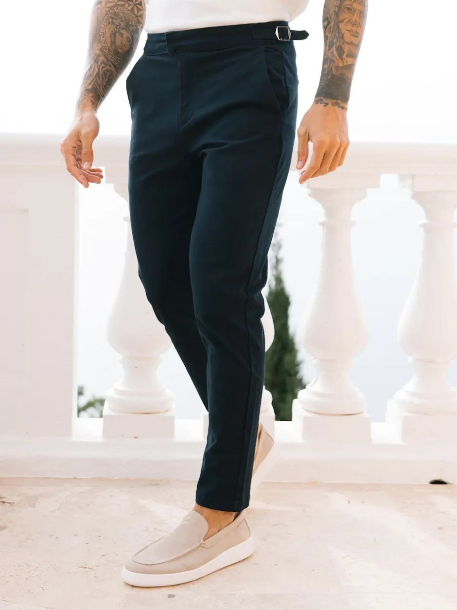 Next marine – Ajustement droit – Pantalons Chinos extensibles plissés avec taille élastique Online