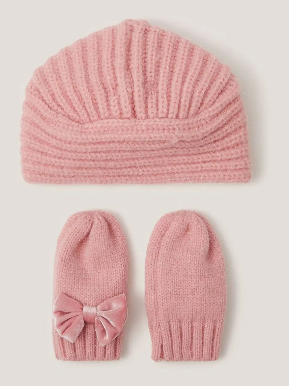 Monsoon Ensemble Bonnet et Mitaines en maille Bébé à nœud Online
