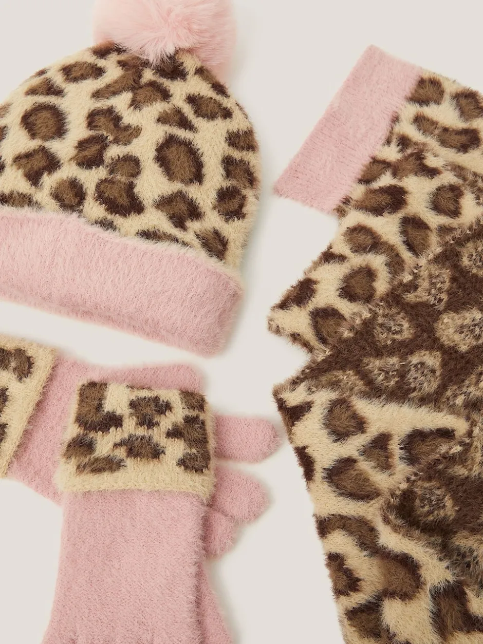 Monsoon Ensemble chapeau, écharpe et gants imprimé léopard Best