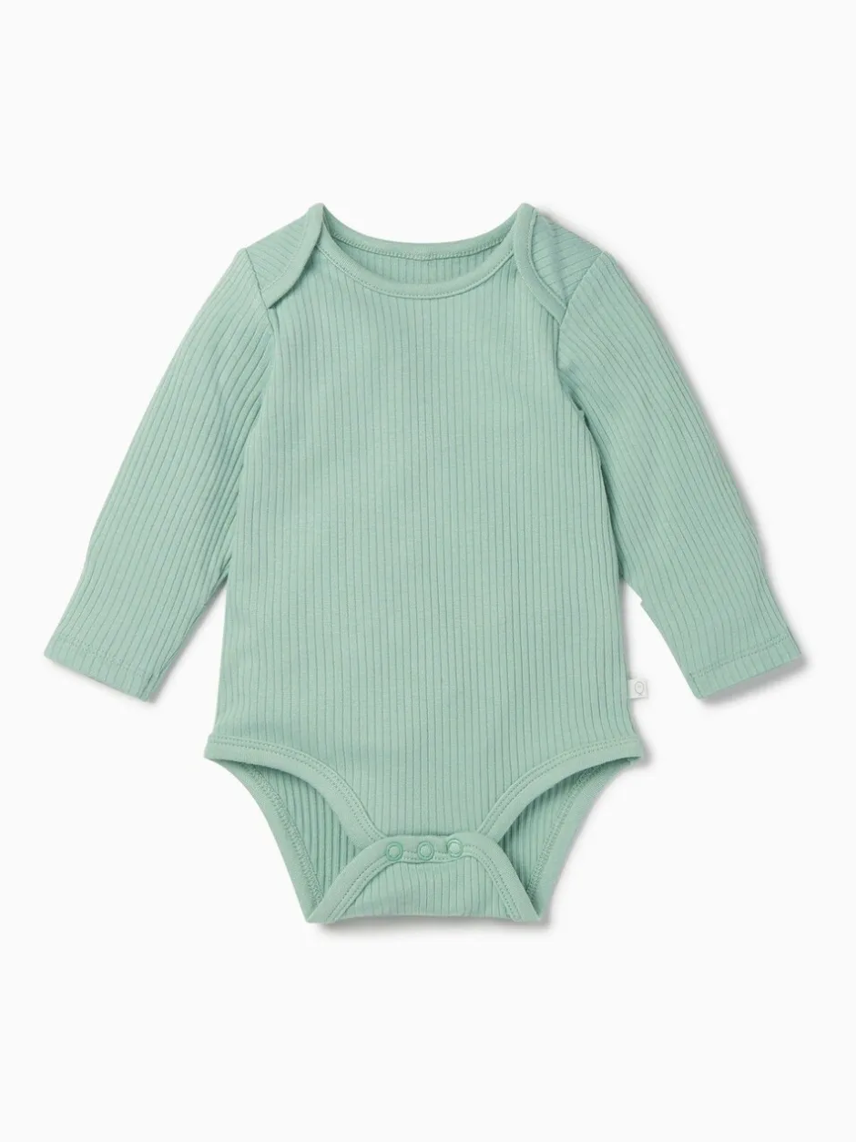 Mori Vert – Body côtelé extensible à manches longues et encolure Discount