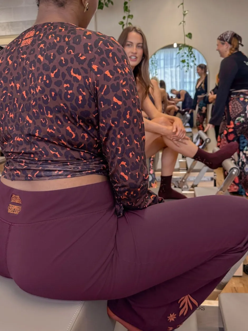 Never Fully Dressed Bordeaux brodé – Leggings évasés en coton