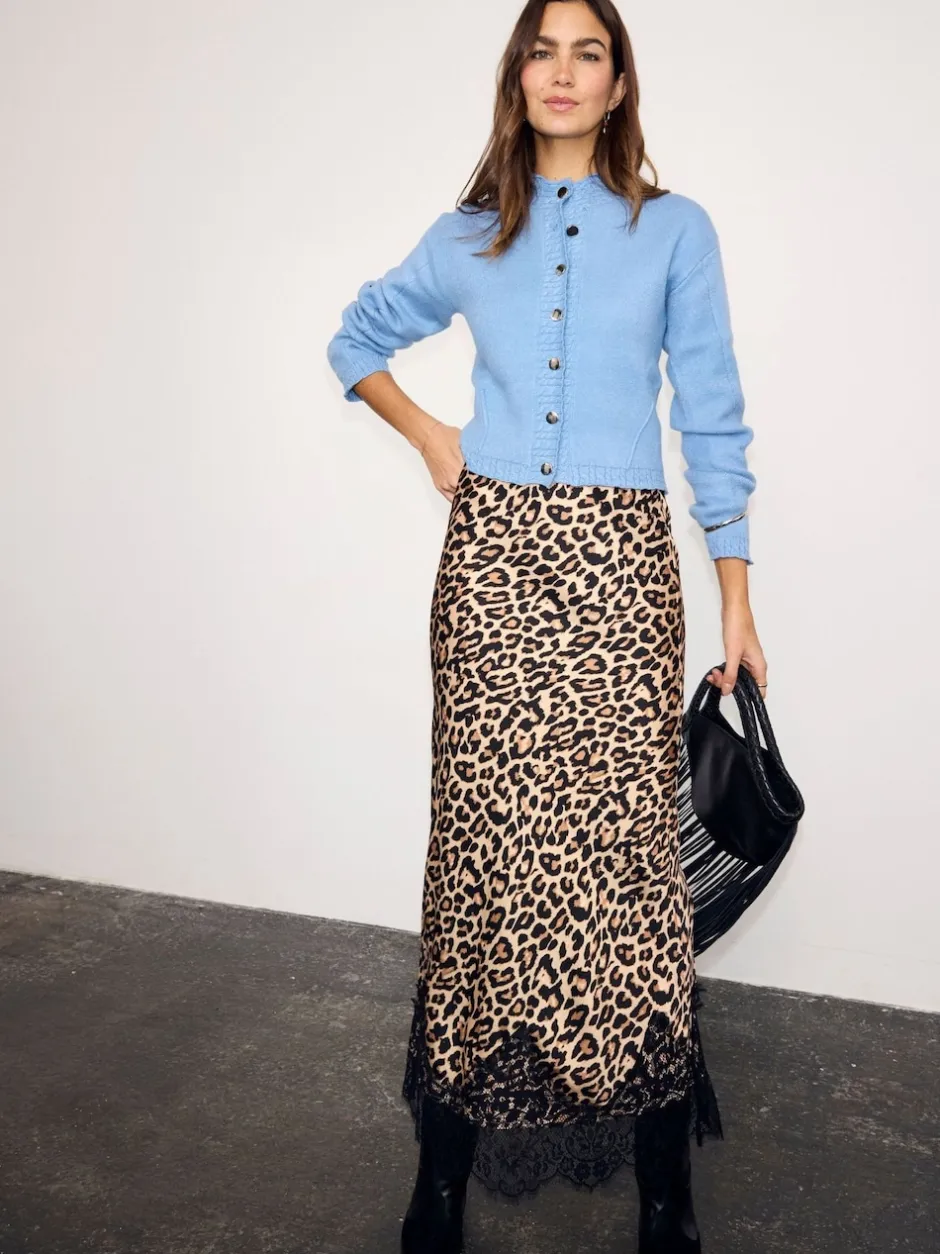 Never Fully Dressed Jupe mi-longue en dentelle imprimé léopard Maeva