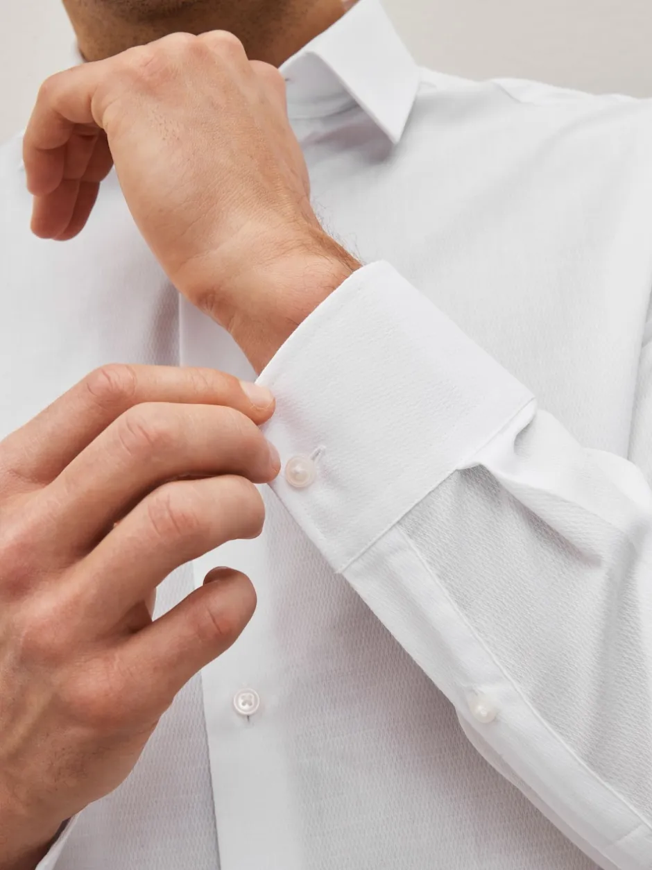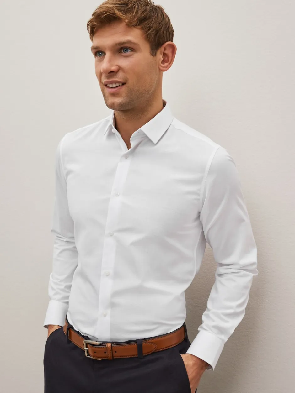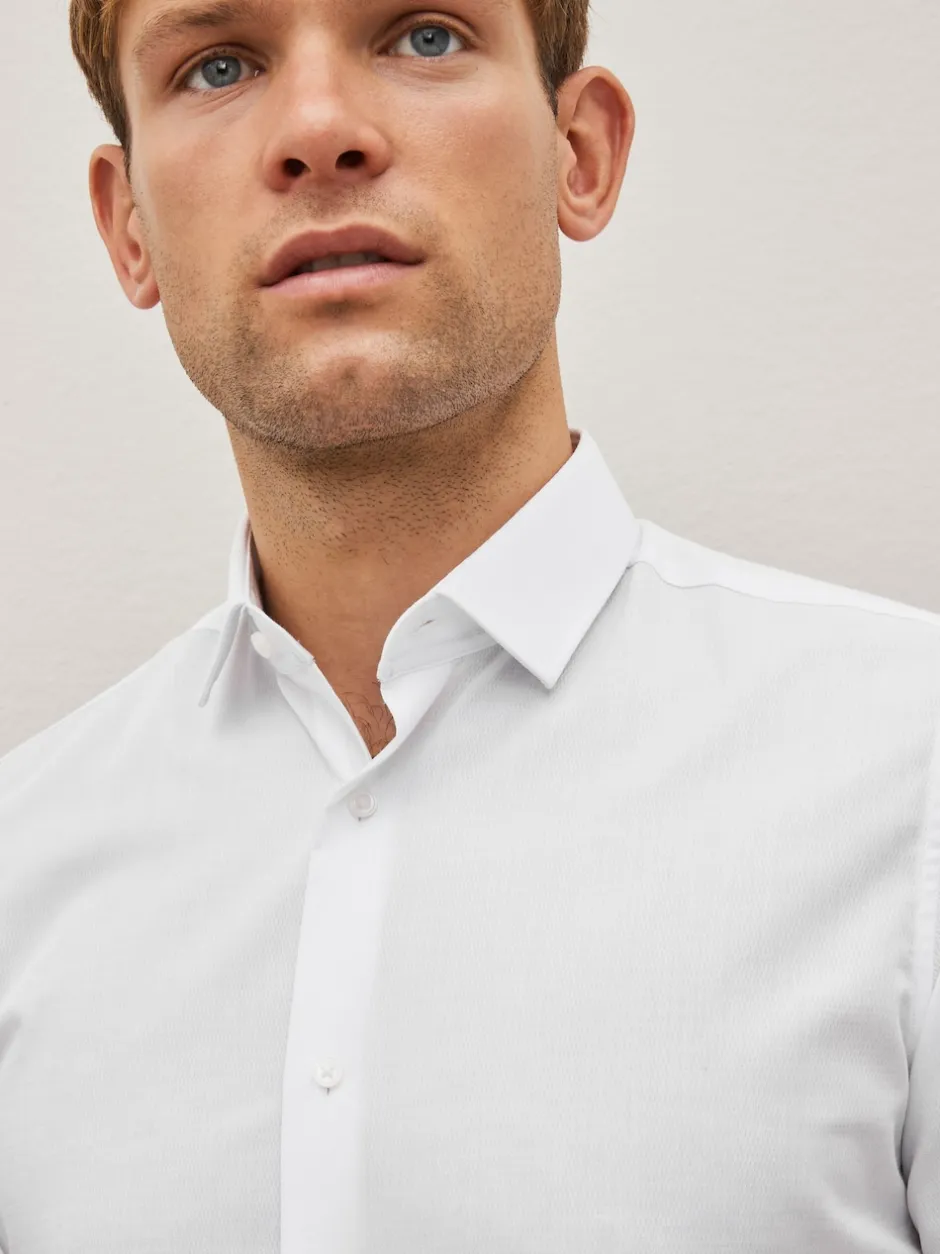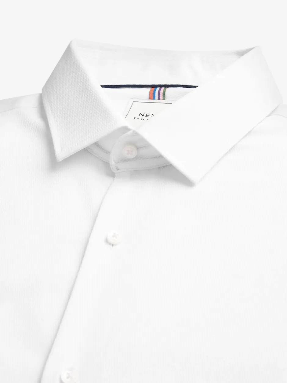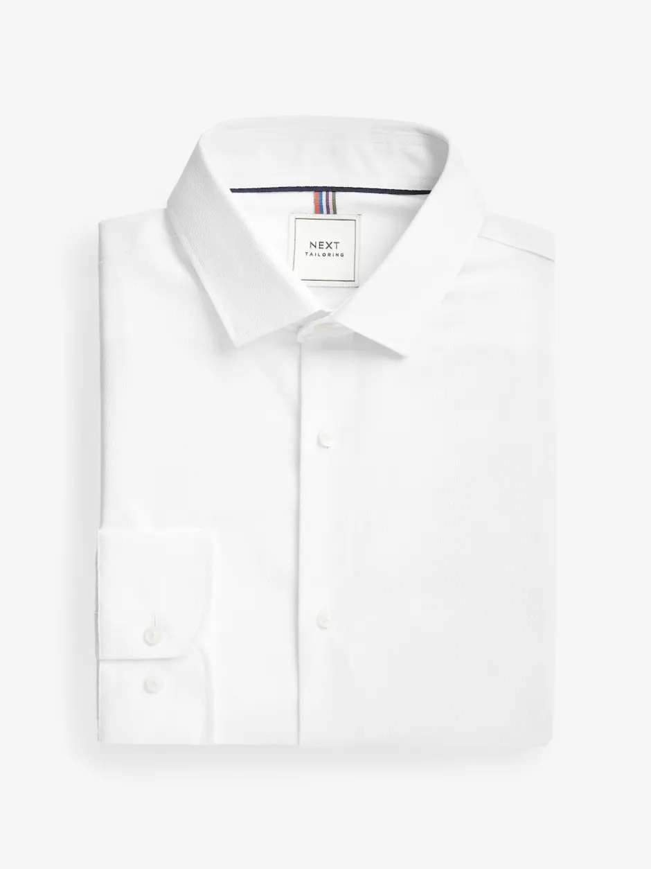 Next – Ajustement régulier – Chemise élégante texturée facile d’entretien à poignets simples Blanc Outlet