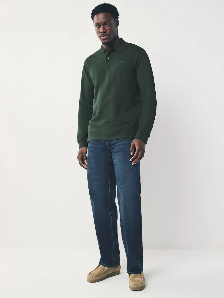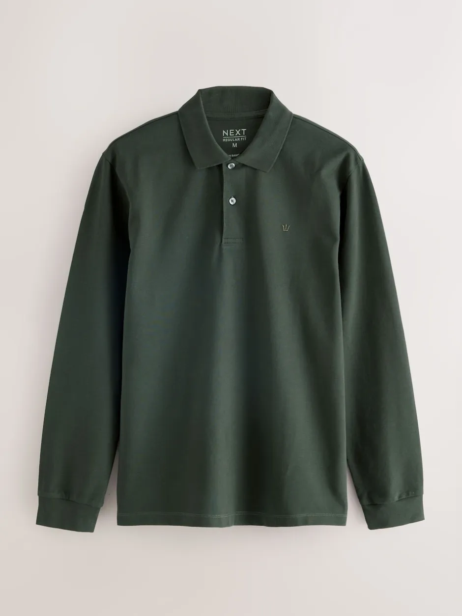 Next – Ajustement régulier – Polo à manches longues en piqué Vert olive Discount