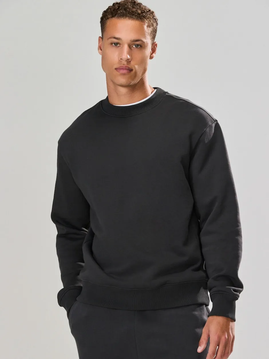 Next – Ajustement régulier – Sweat-shirt épais à Col rond riche en coton Gris d’ardoise Clearance