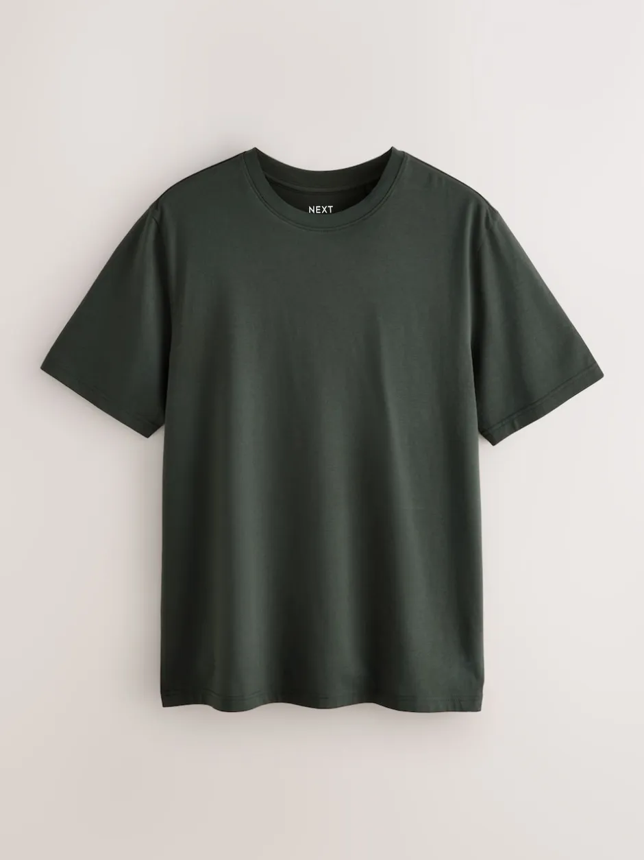 Next – Ajustement régulier – T-shirt Essential Col rond en coton Vert foncé Sale
