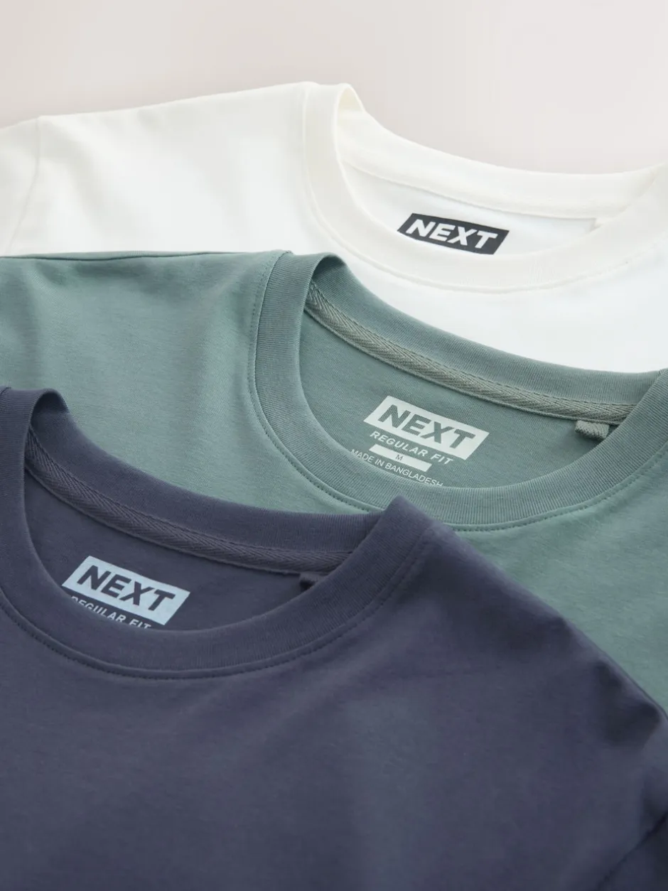 Next – Ajustement régulier – T-shirt Graphic Imprimé 3 Pack Bleu marine/Blanc Écru/Bleu canard Online