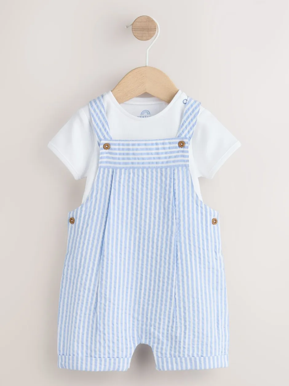Next Bande bleue – Ensemble bébé salopette et body tissé (0mois-2ans) Hot