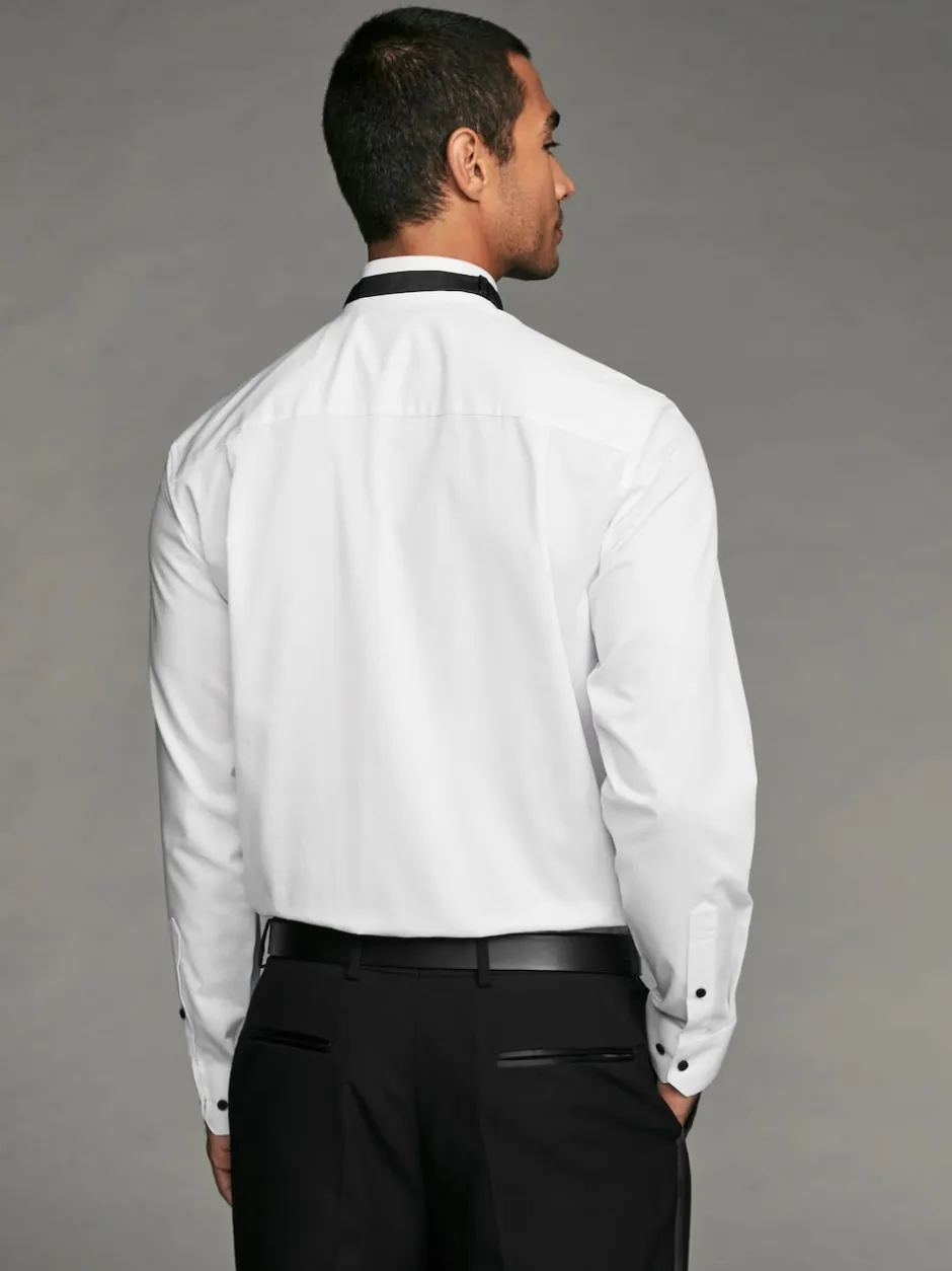 Lavable en machine. Chemise 65% Polyester recyclé, 35% Coton. Nœud papillon 100% de polyester recyclé.