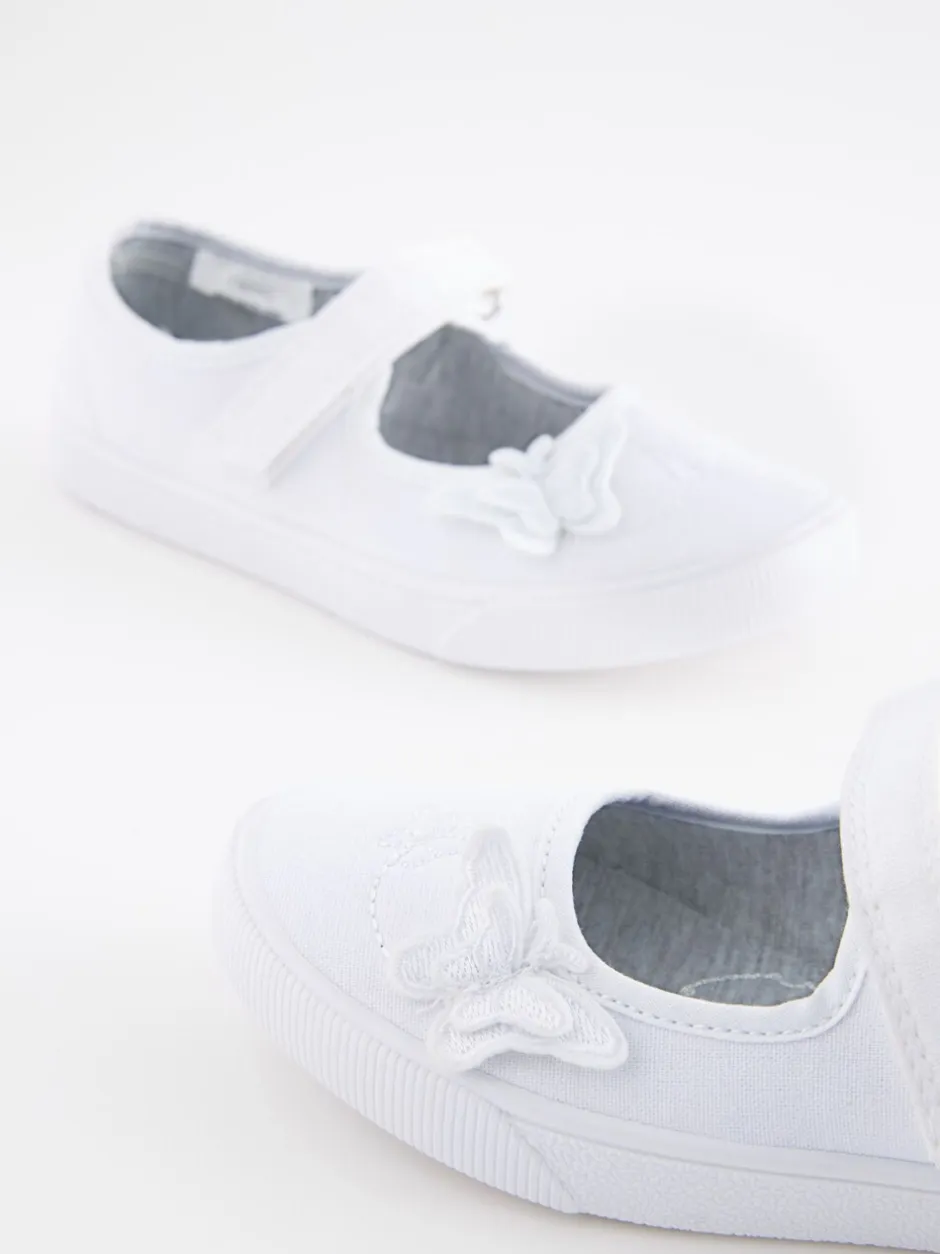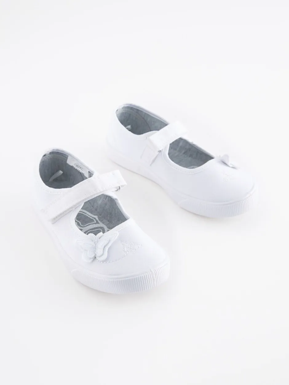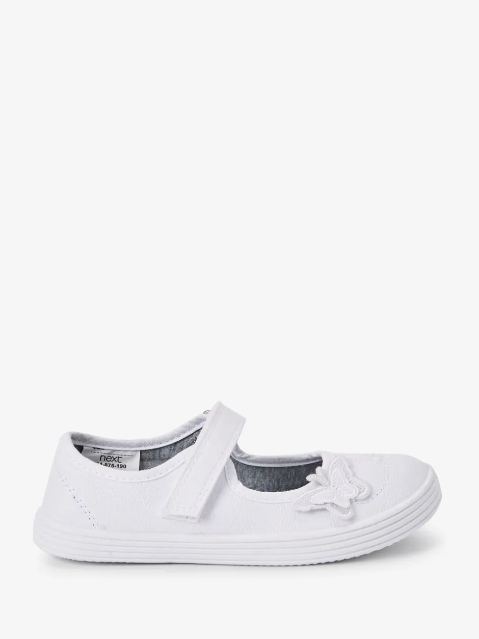 Next Blanc – Butterfly Embroidered School Plimsoll Chaussures Best