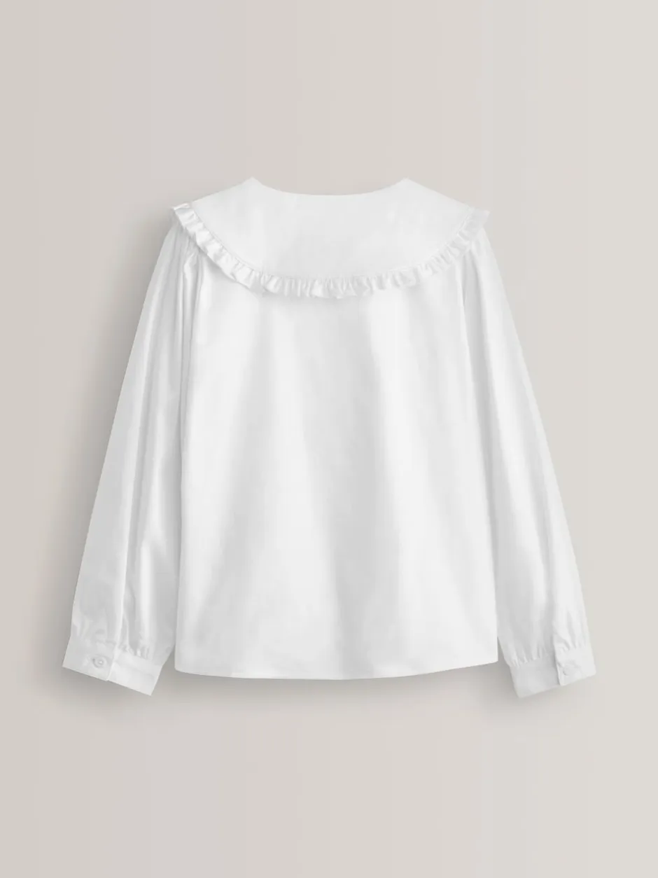 Next Blanc – Chemisier scolaire à manches longues en coton extensible haut de gamme à volants (3-14ans) Online