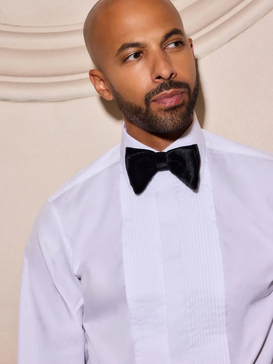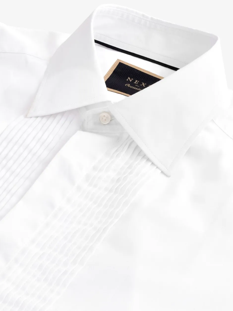 Next Blanc étroit Plissé – Chemises de chambre à double poignet 100% coton avec col découpé Clearance