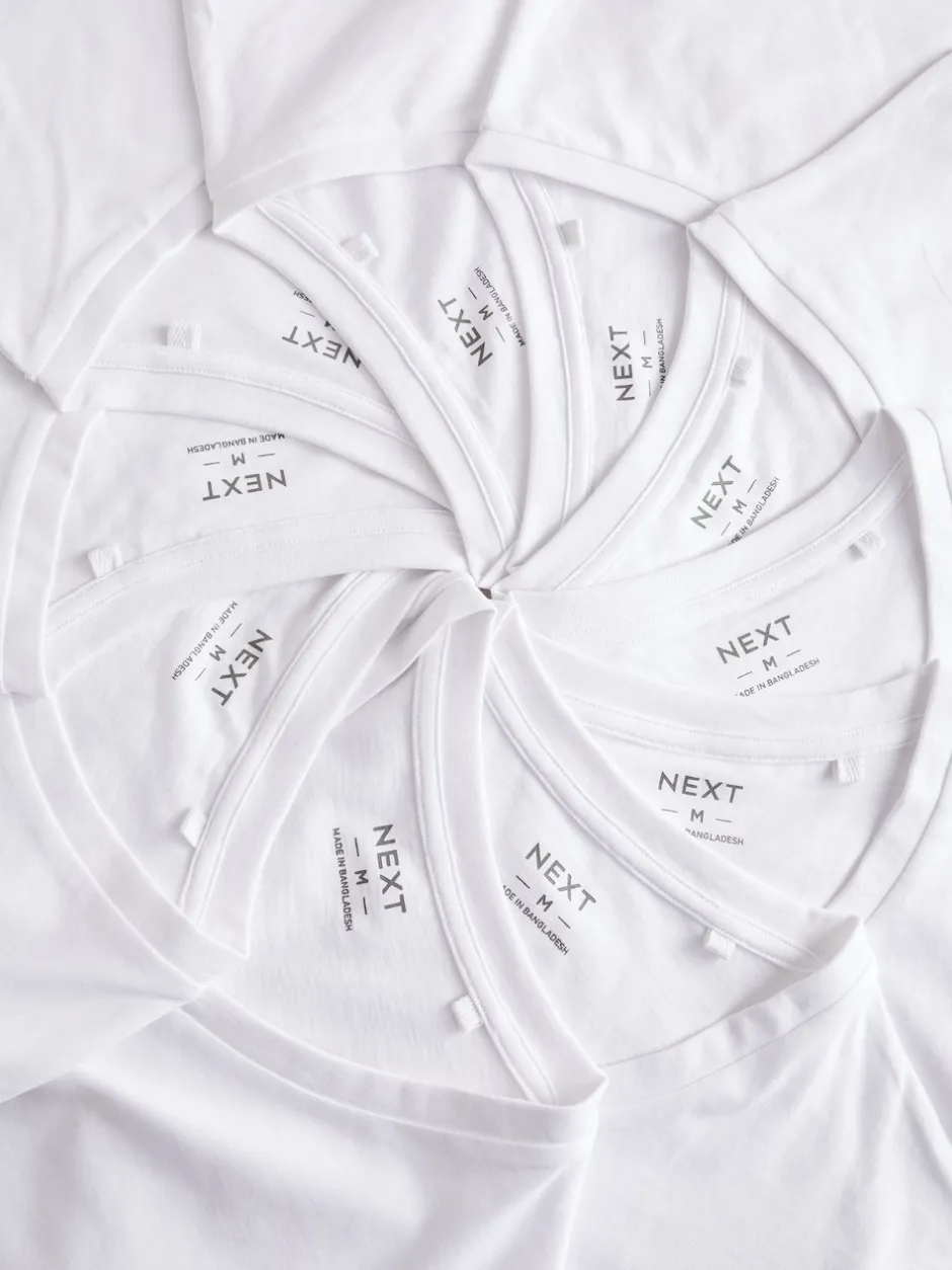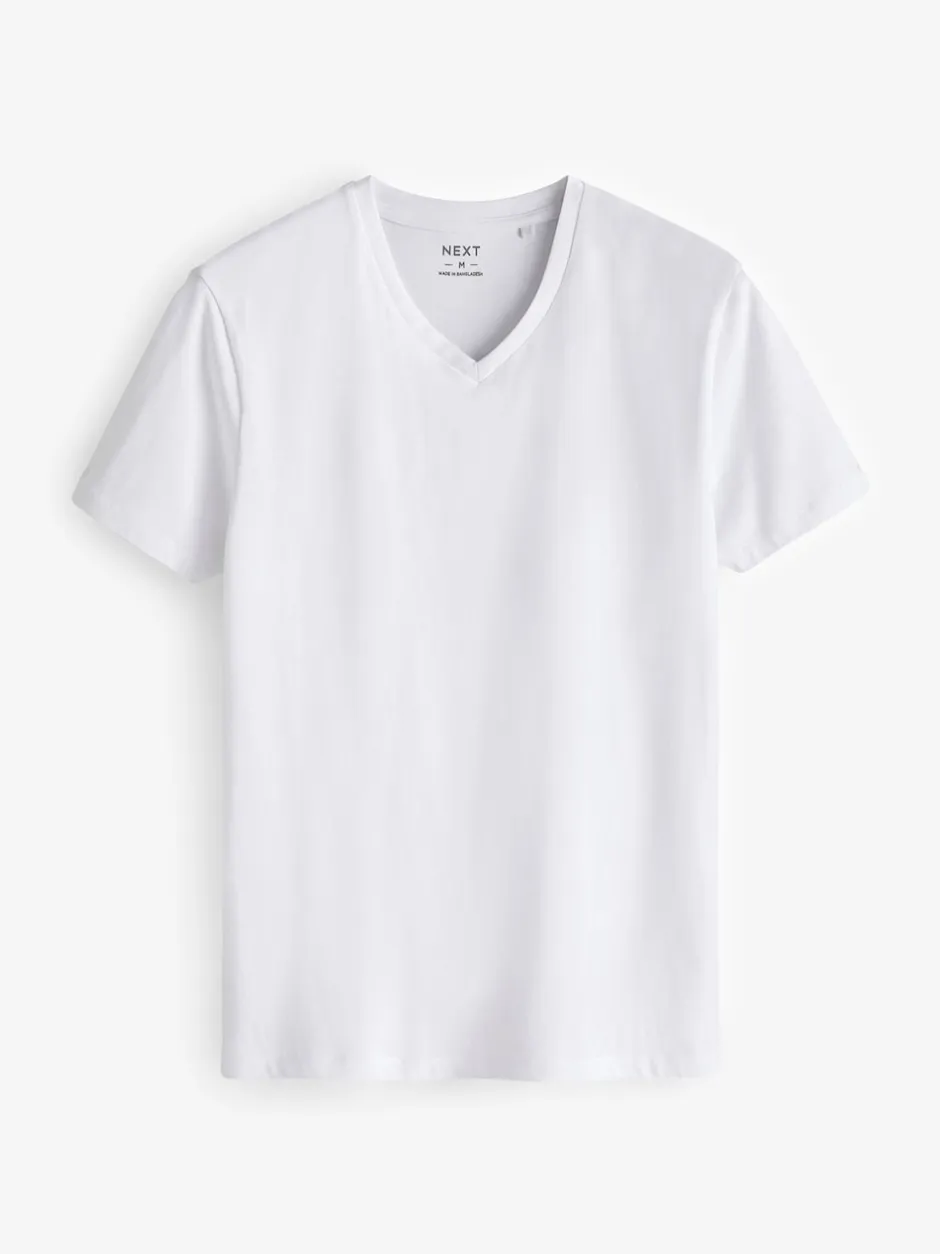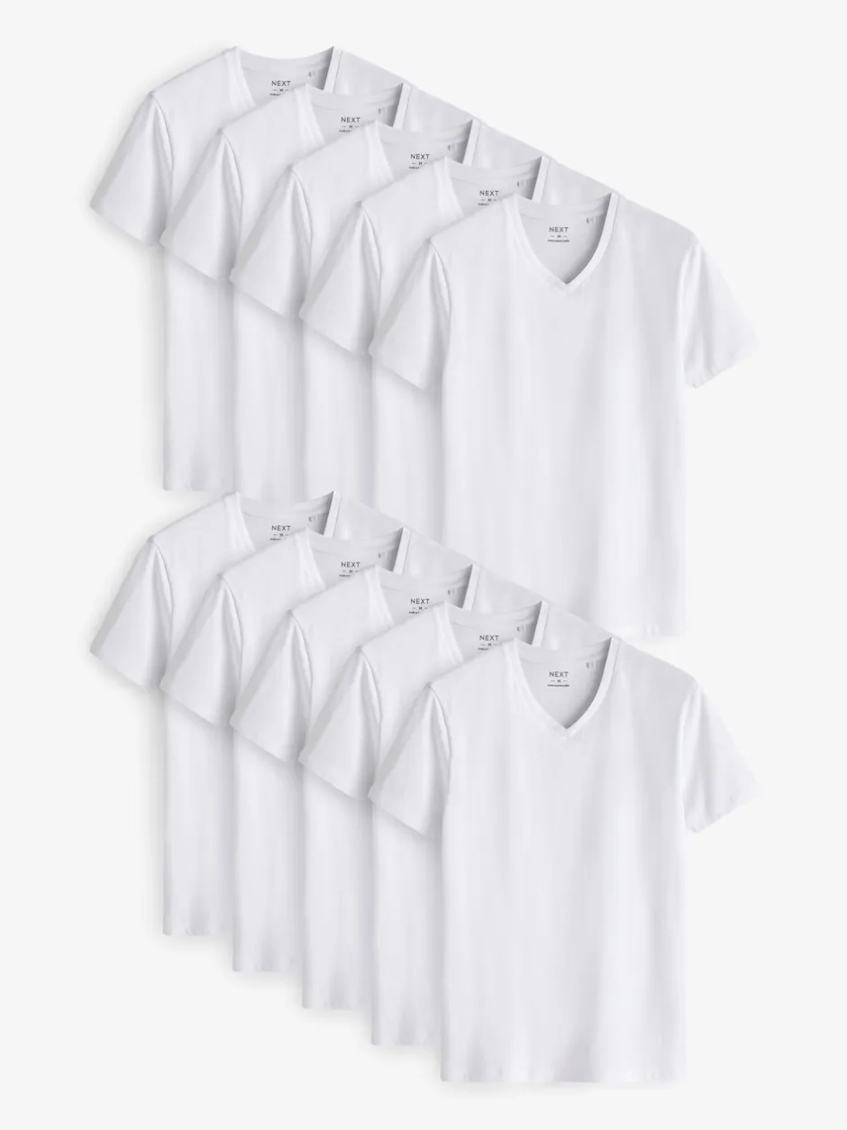 Next Blanc – Lot de 10 T-shirts Col en V 100% Coton Coupe ajustée Discount