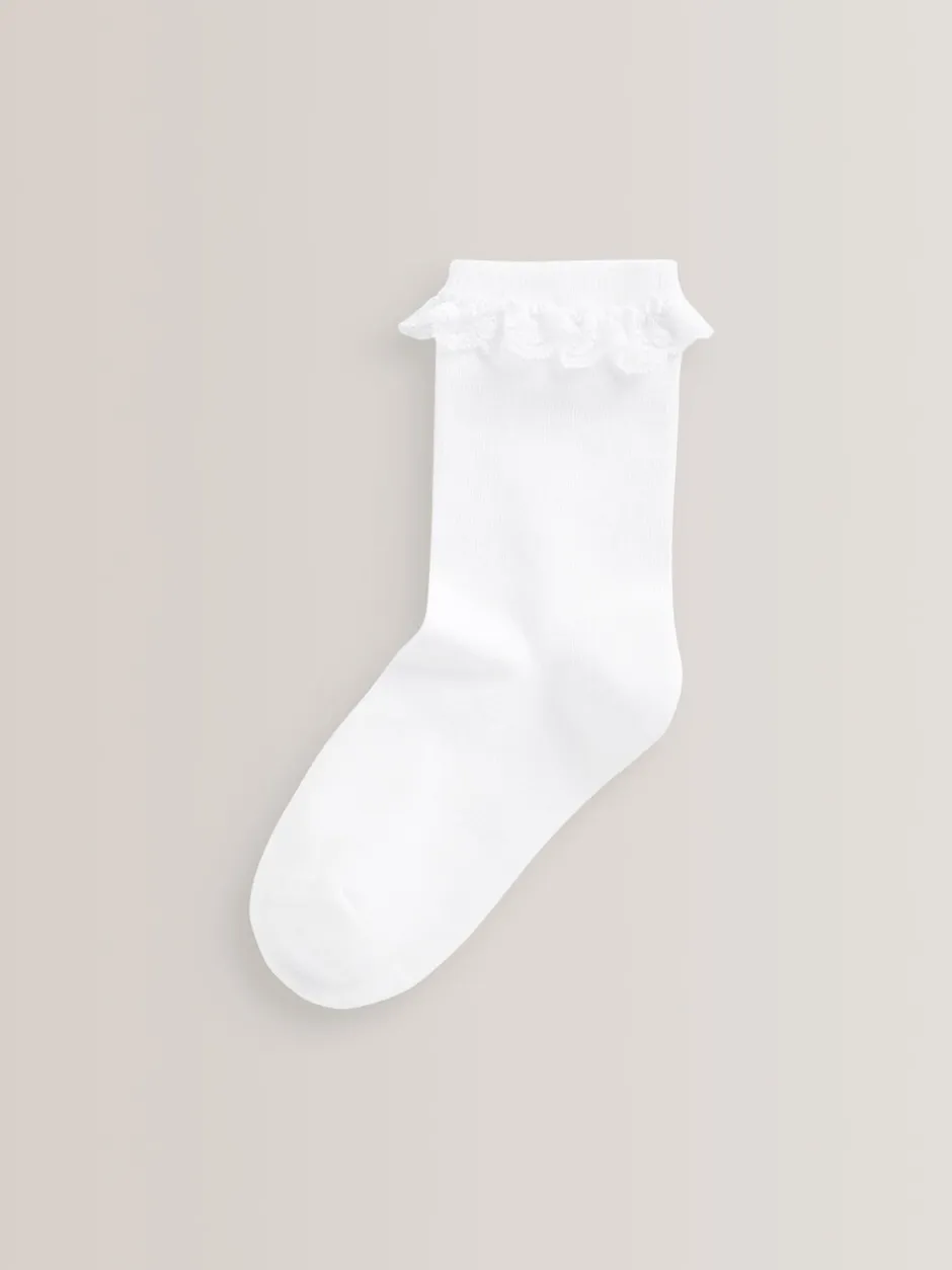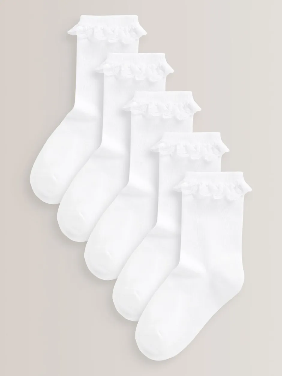 Next Blanc – Lot de 5 chaussettes d’école à semelle rembourrée en coton majoritaire et volants Online