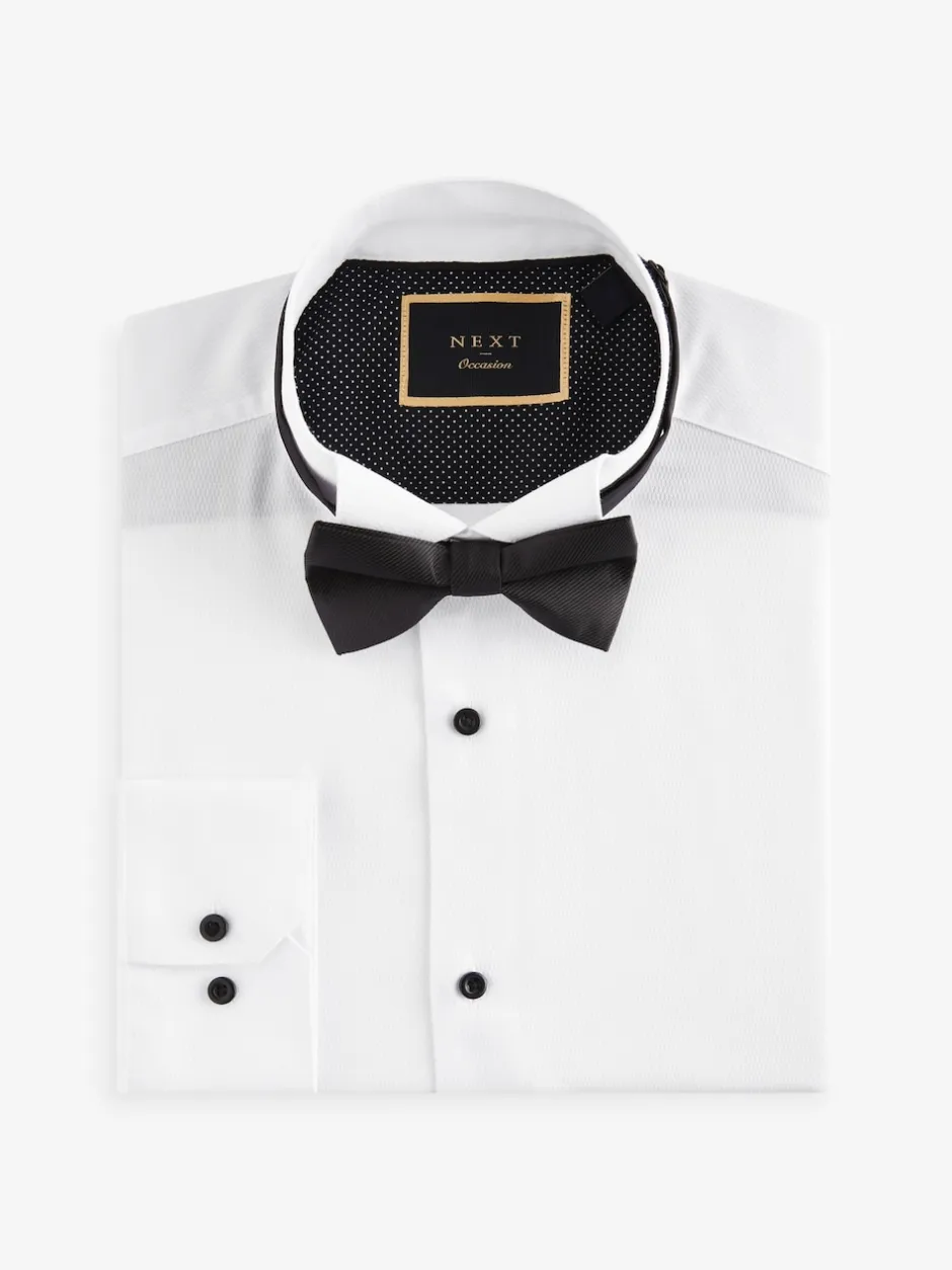 Next Blanc – Slim Fit (Slim Fit) – Coupe ajustée Single Cuff Chemises With Col cassé And Nœud papillon Lot Hot