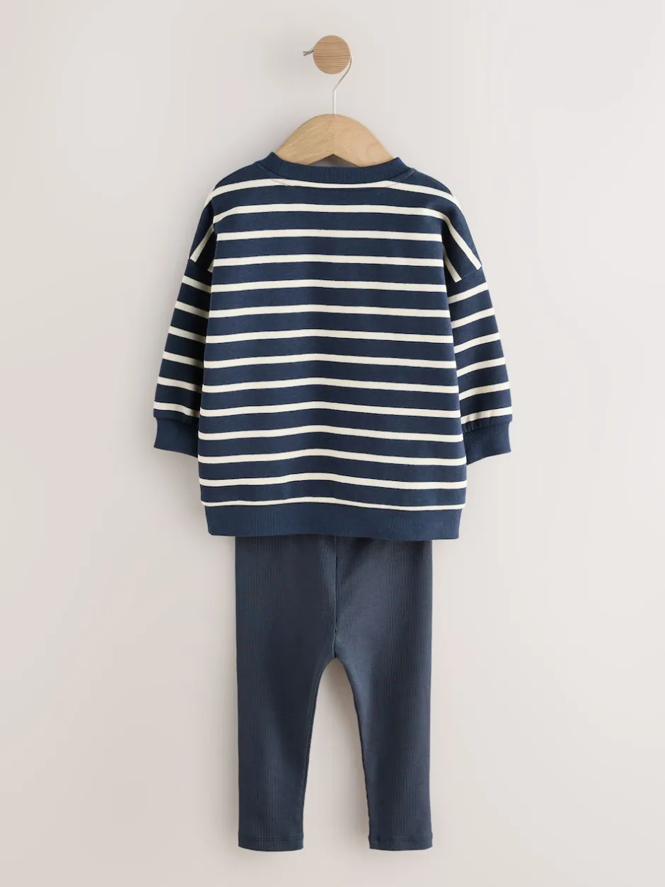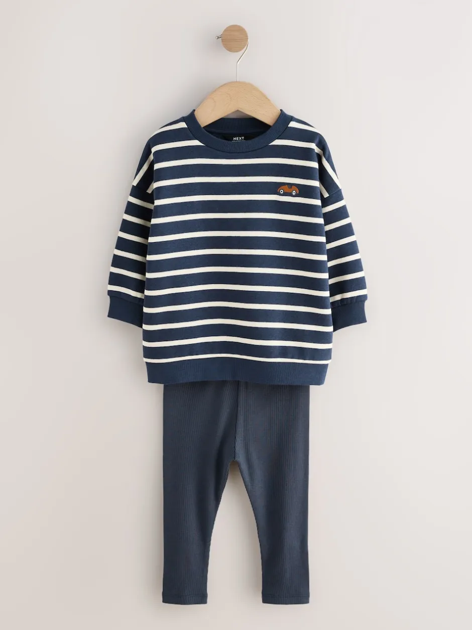 Next Bleu/blanc rayé/auto – Ensemble sweat-shirts et legging, lot de 2 (3mois-7ans) Best