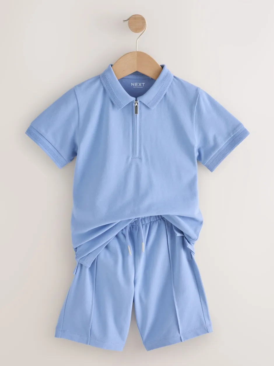Lavable en machine. Polo et short 95% coton, 5% élasthanne.