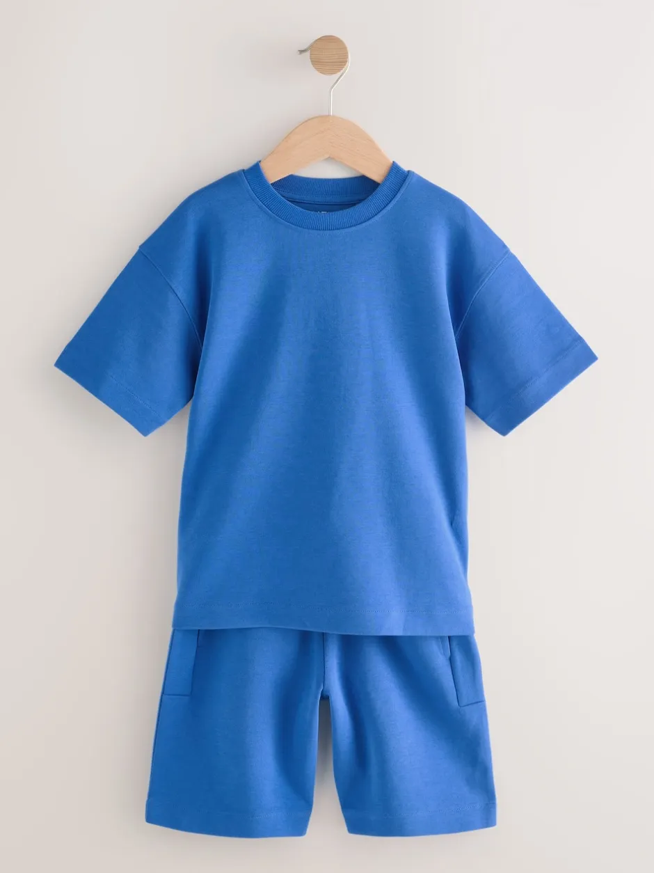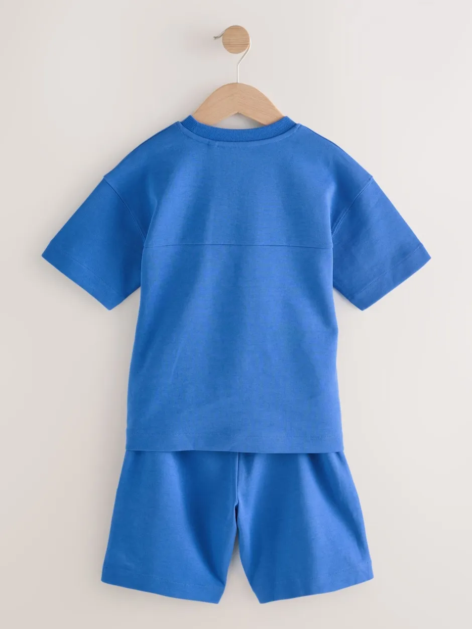 Lavable en machine. T-shirt et short 80% coton, 20% polyester recyclé.