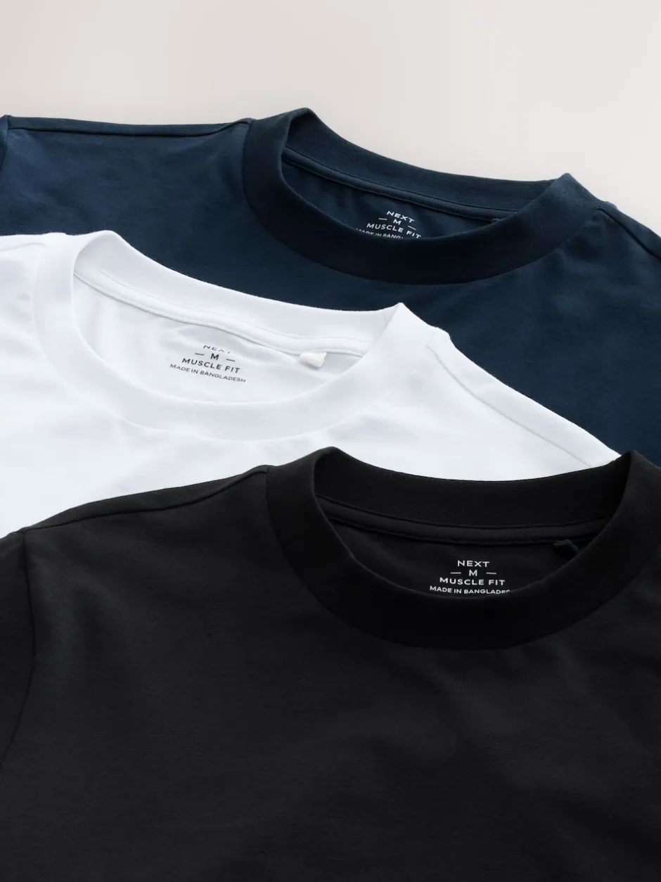 Lavable en machine. 3 x T-shirt 95 % coton, 5 % élasthanne.
