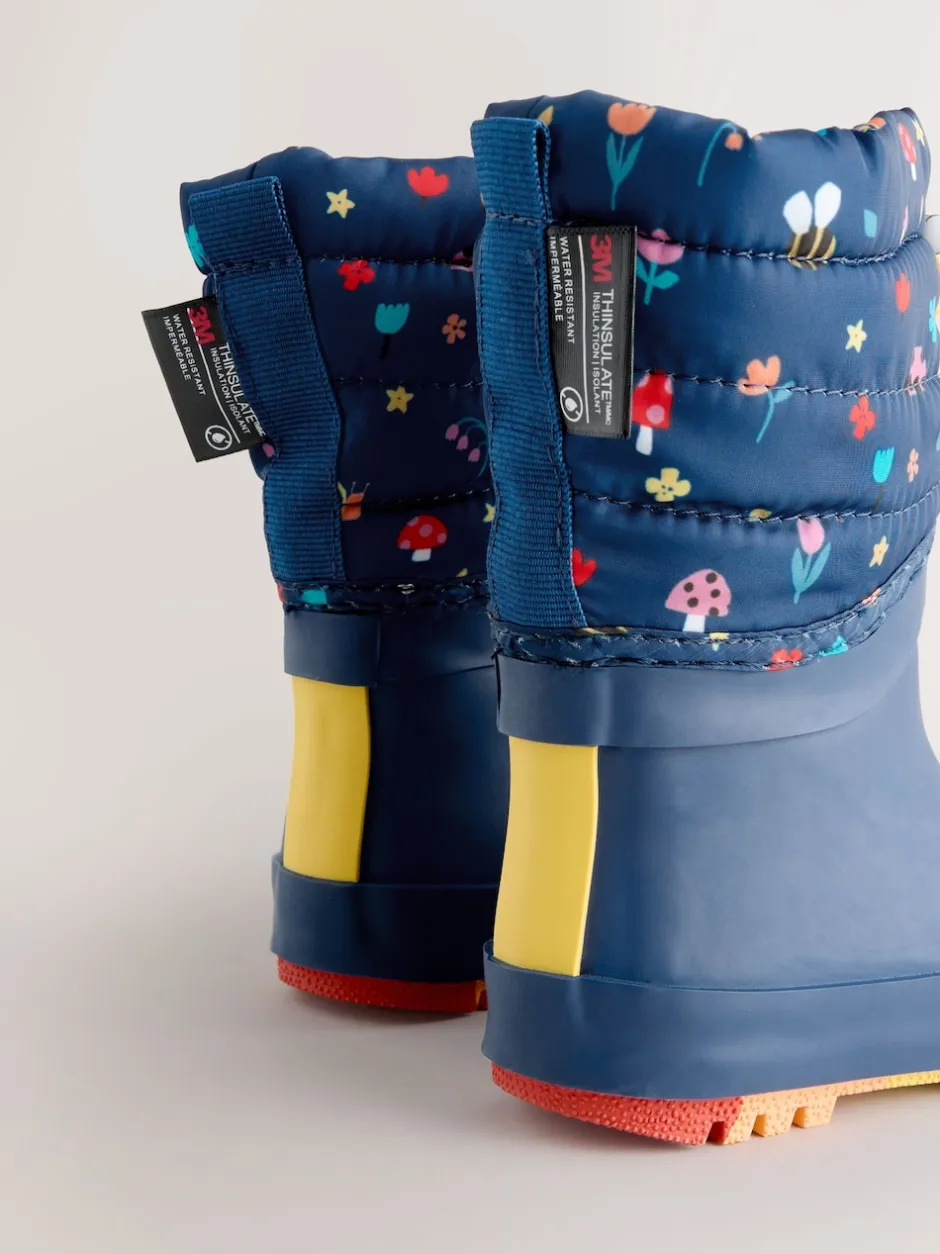 Next Bleu marine – Bottes en caoutchouc Thinsulate doublées à revers New