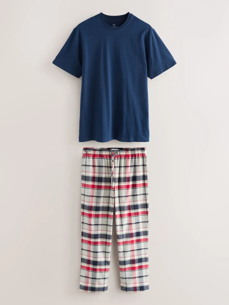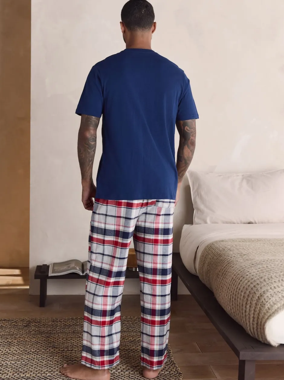 Next Bleu marine/gris – Ensemble pyjama tissé à carreaux à manches courtes Clearance