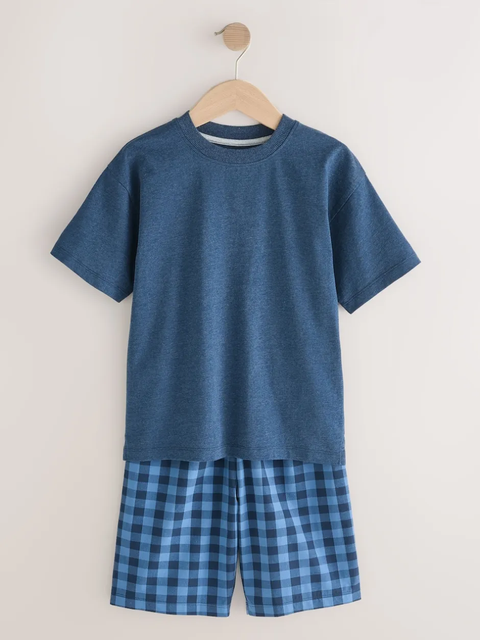 Next Bleu marine/gris – Lot de 2 pyjamas oversize tissés à carreaux (3-16ans) New