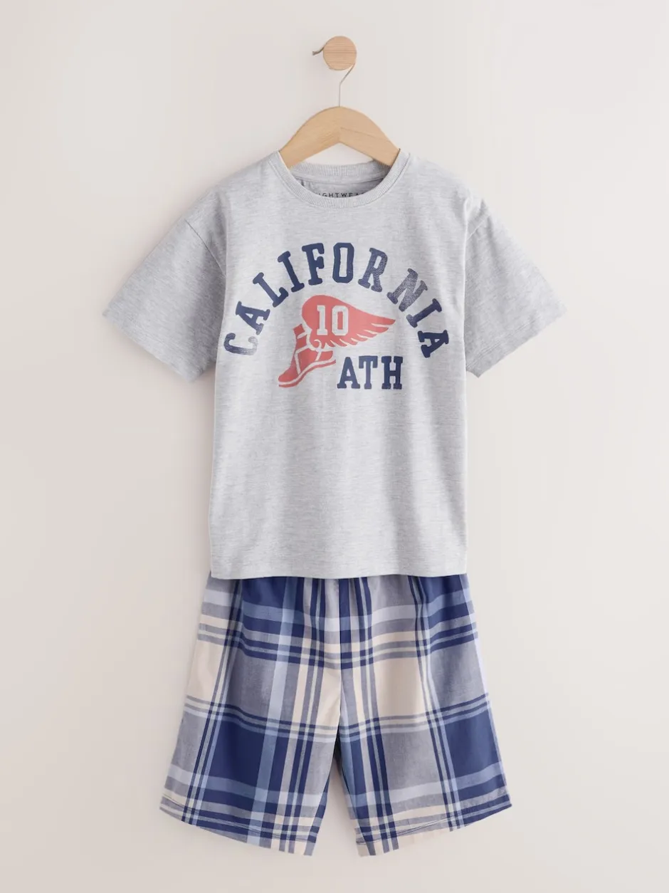 Next Bleu marine/gris universitaire – Carreaux Pyjamas courts tissés 2 Lot de (4-16ans) Clearance