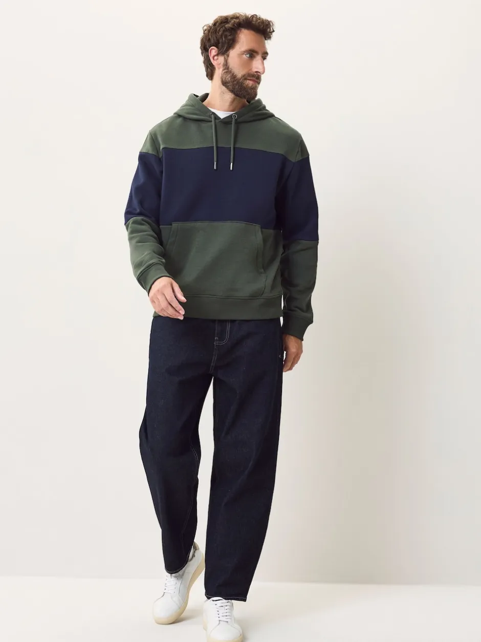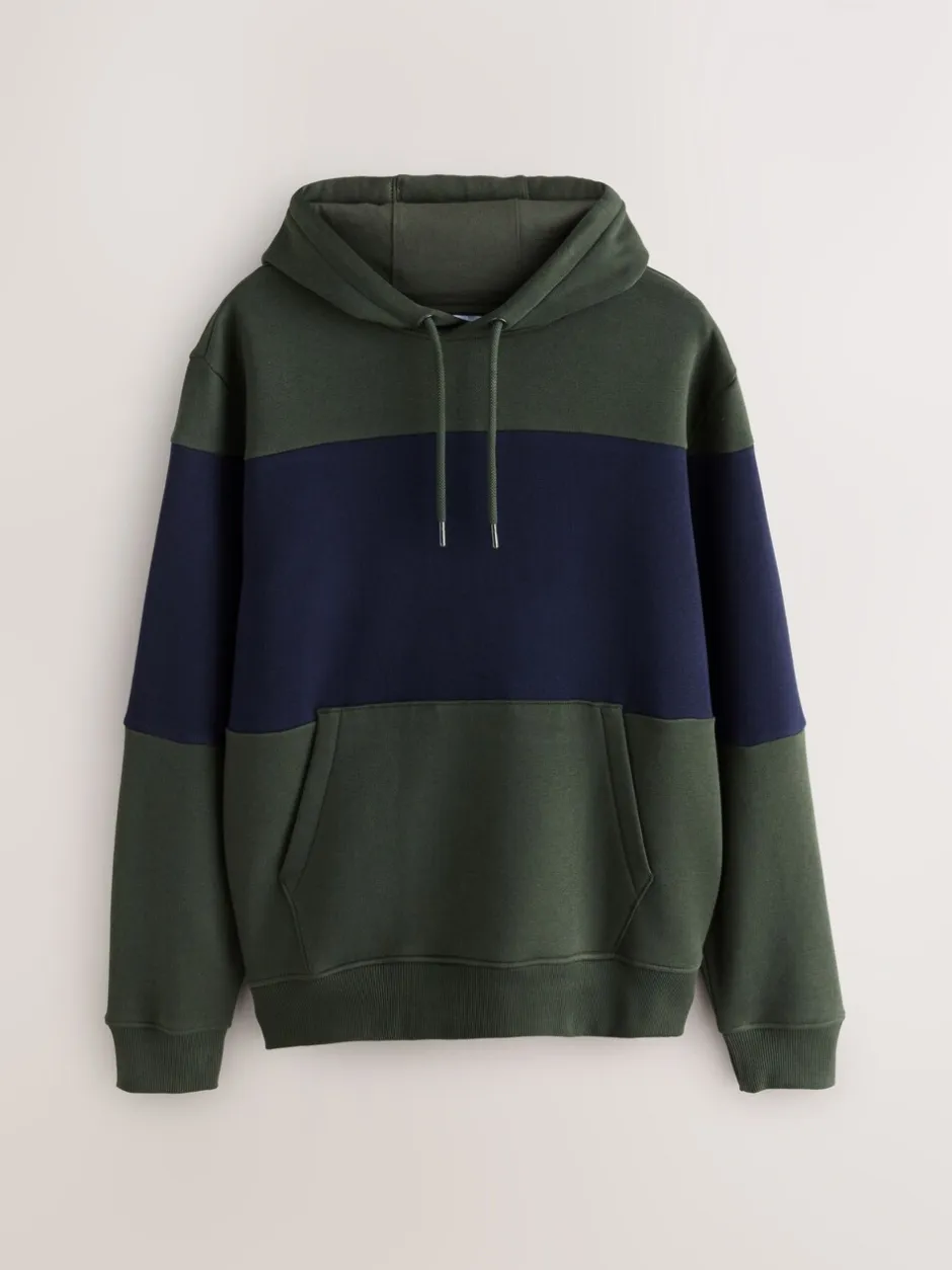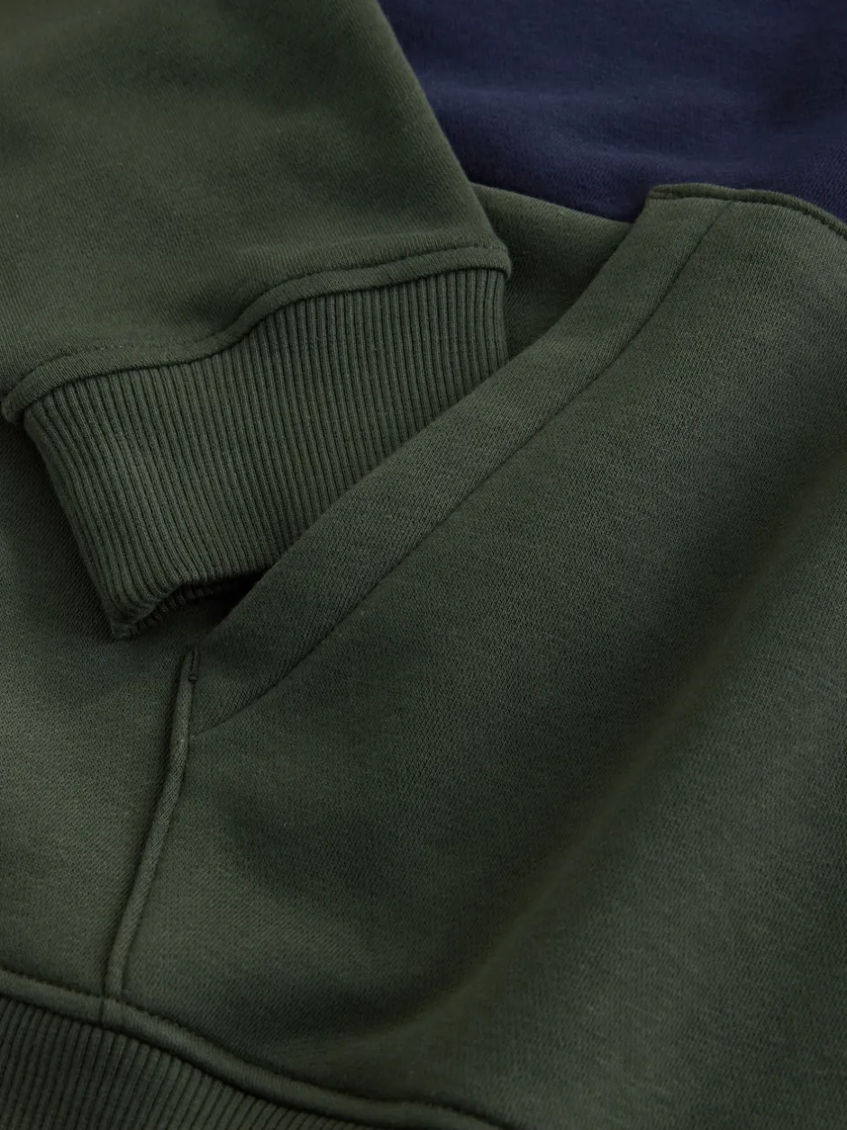 Next Bleu marine/vert kaki – Sweat à capuche à enfiler – Sweat-shirt color block Best
