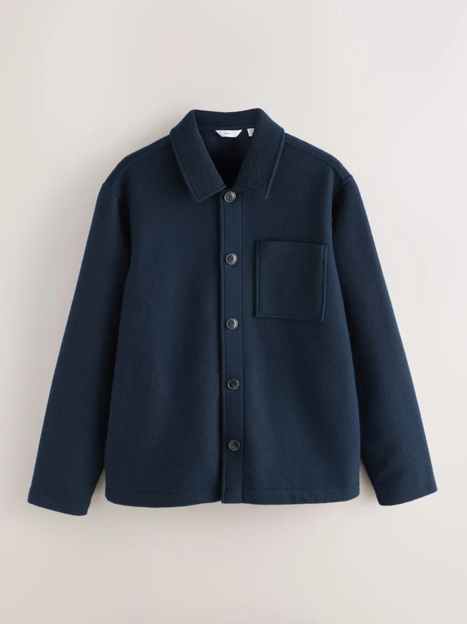 Next Bleu marine – Veste-chemise en polaire aspect laine New