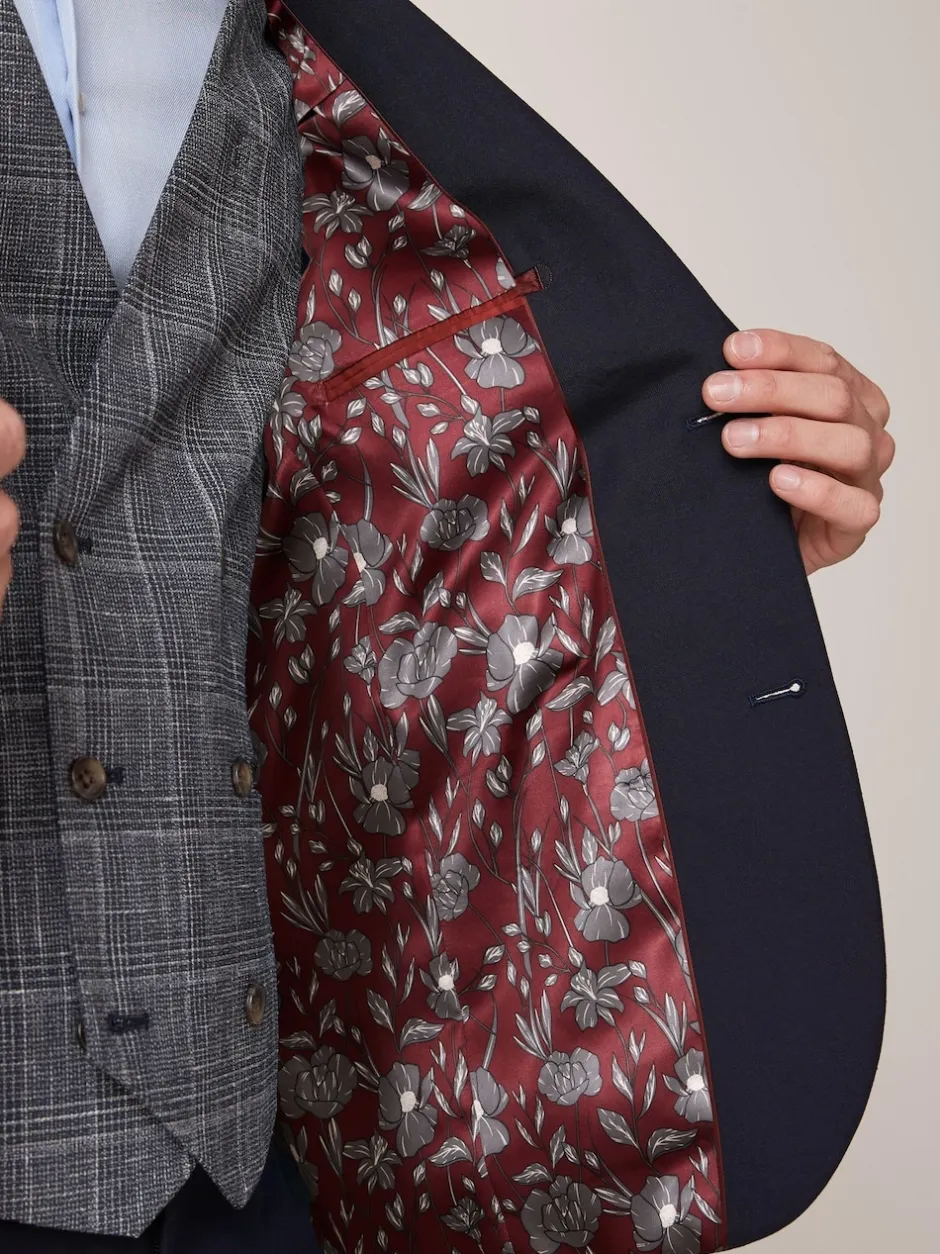 Lavable en machine. Matière principale 62% Polyester recyclé, 35% Viscose, 3% Polyester. Doublure 100% de polyester recyclé. Pour consulter notre guide des coupes de costumes pour hommes, CLIQUEZ ICI Les modèles indiqués sont disponibles en coupe plus longues pour les manches et le corps.