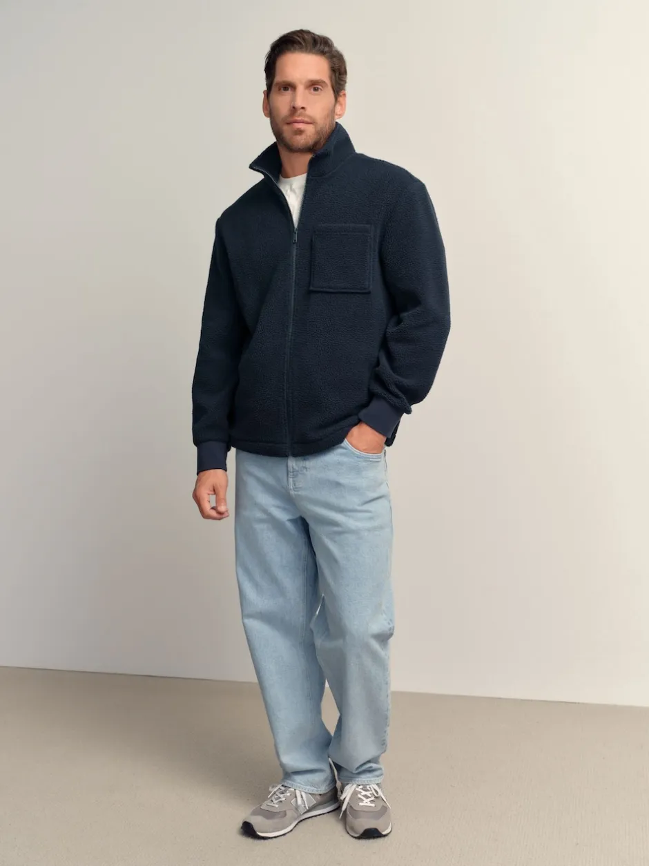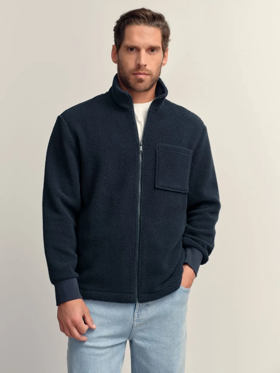 Next Bleu marine – Zippé sur toute la longueur – Polaire en peau de mouton Clearance