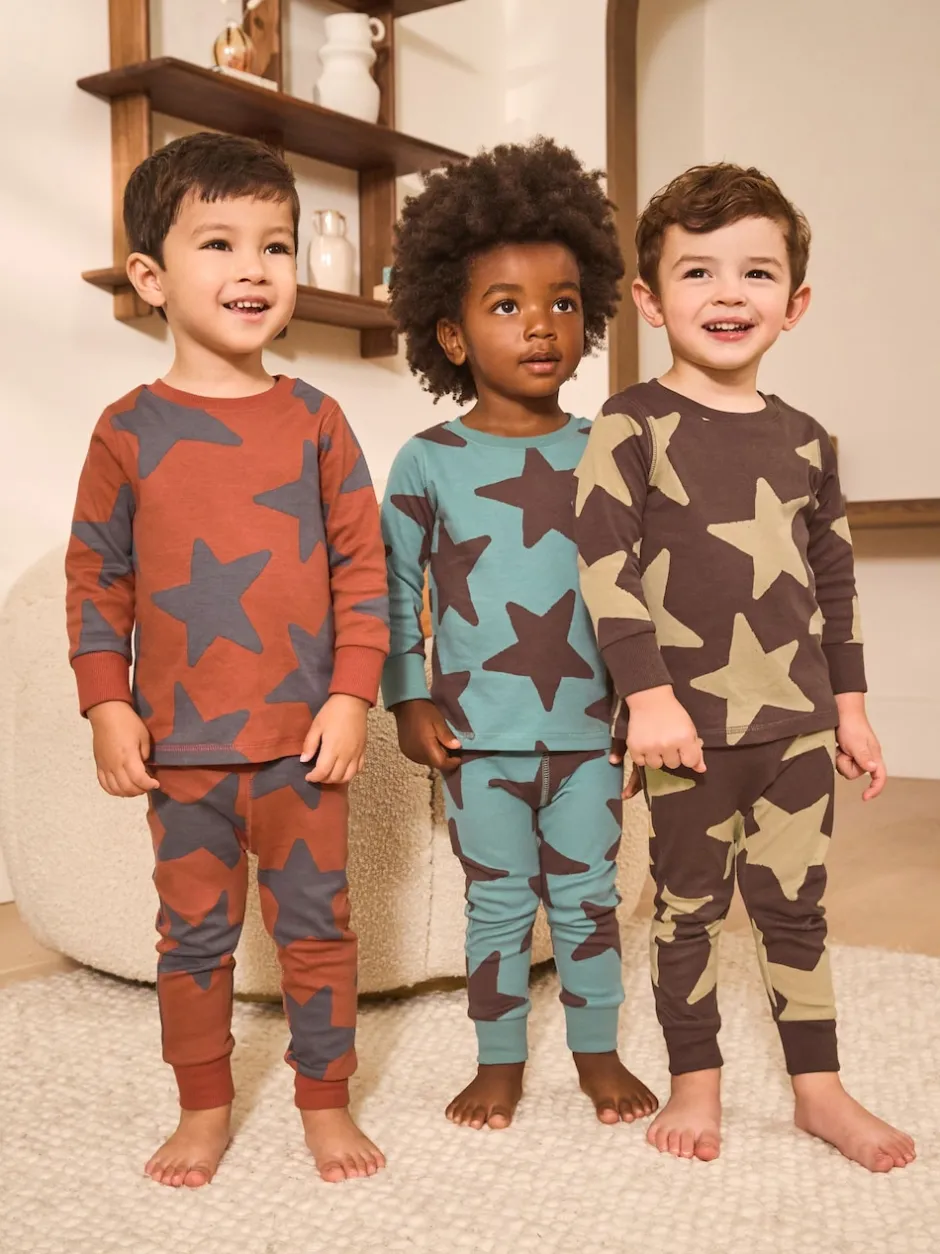 3 x Haut de pyjama et 3 x pantalon de pyjama 100 % coton. Avertissement : tenir à l’écart du feu et des flammes.