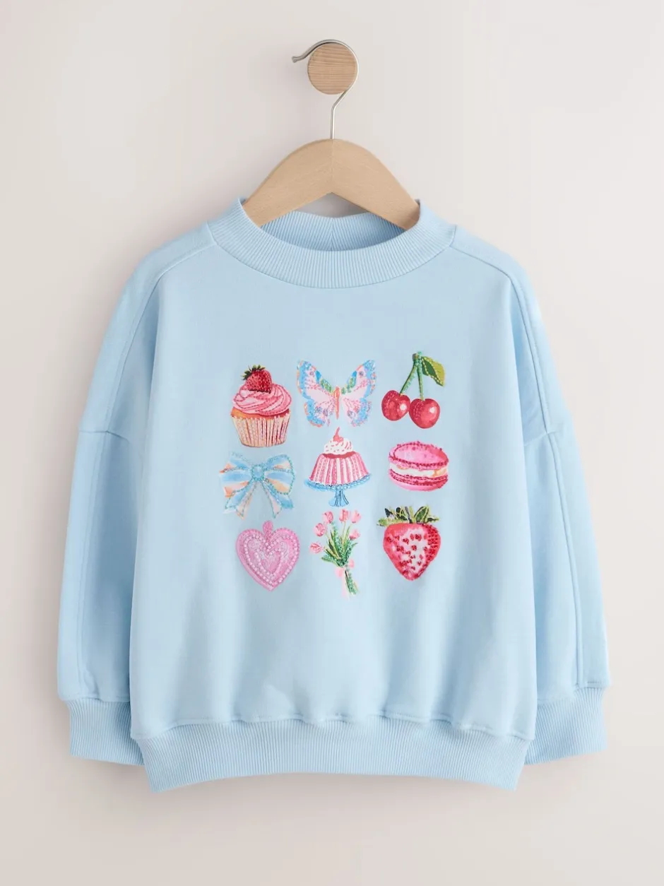 Next Bleu motif gâteau orné de perles – Sweat-shirt (3-16yrs) New
