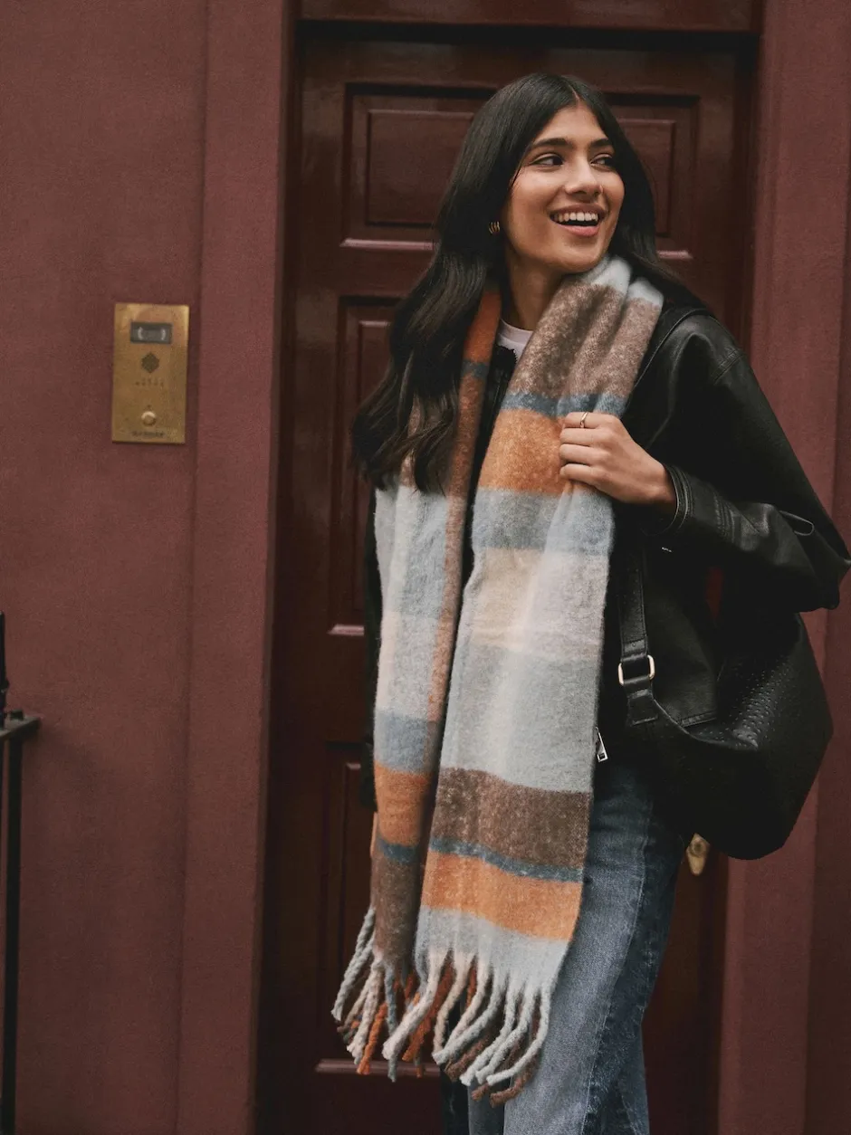 Next Bleu/Orange – Écharpe couverture brossée épaisse Hot