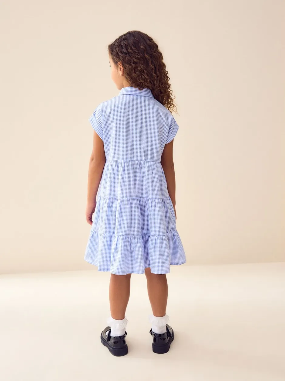 Next Bleu – Robe chemise à col chemise à volants vichy Cotton Rich School (3-14ans) New