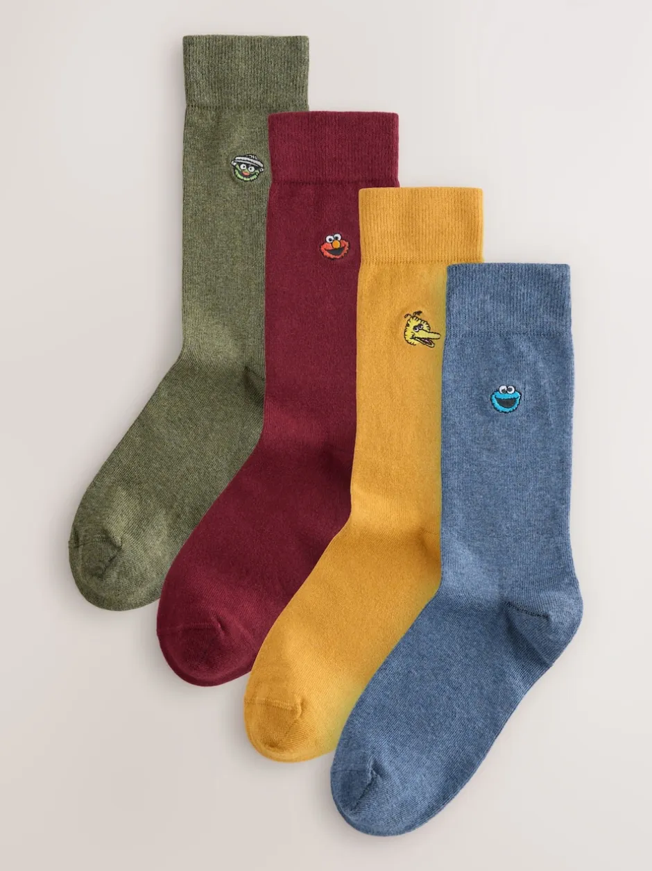 Next Bleu/Vert/Rouge – Lot de 4 chaussettes brodées Sesame Street Clearance