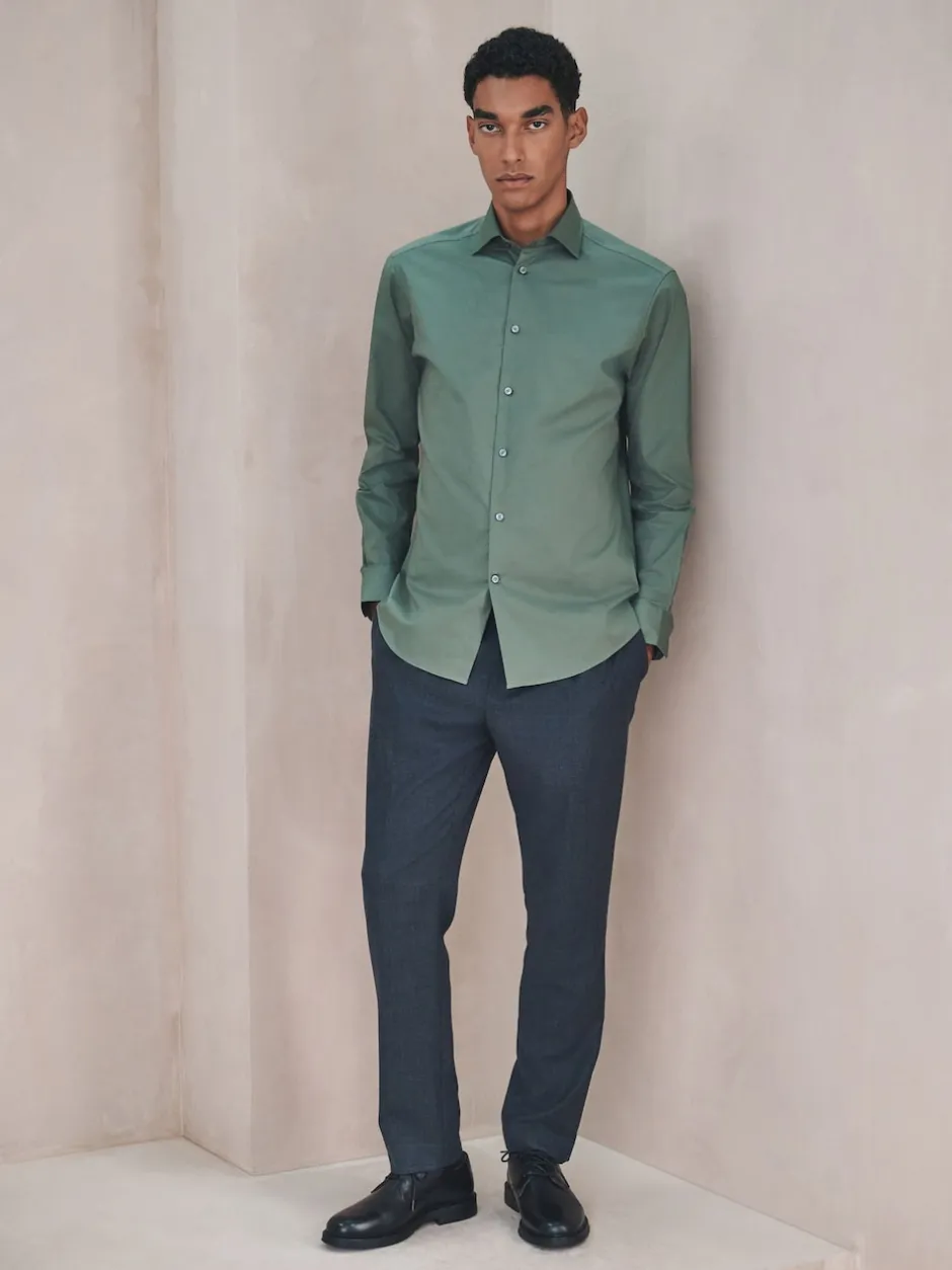 Next – Chemise habillée à manches longues en coton extensible Vert olive Sale