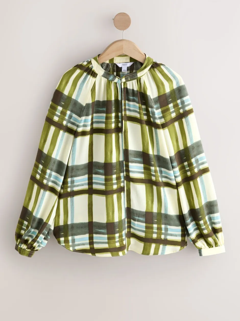 Next – Chemisier manches longues à col V Carreaux vert/écru Hot