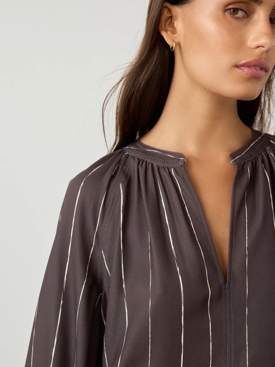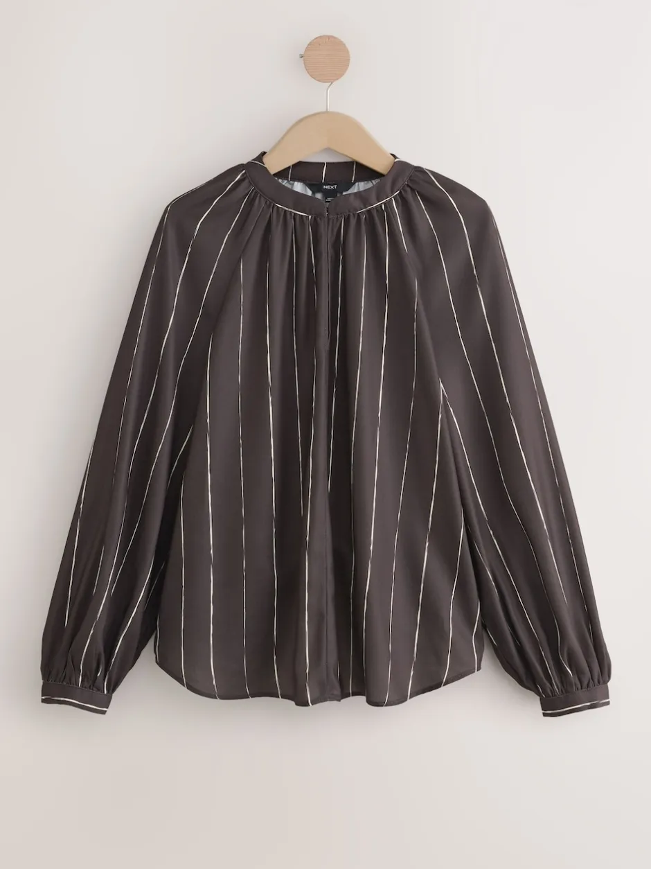 Next – Chemisier manches longues à col V Marron chocolat rayé