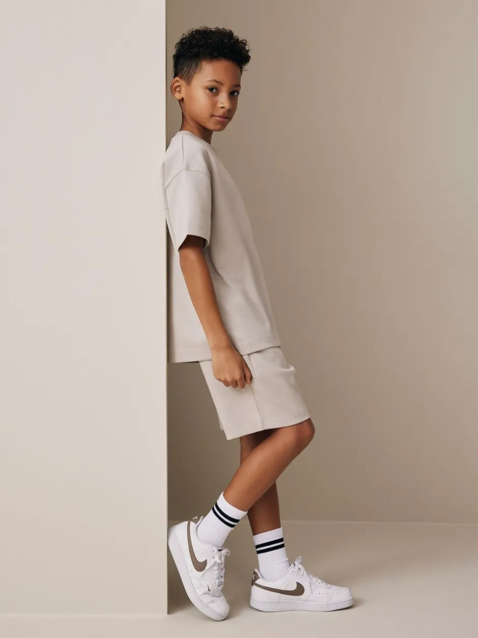 Lavable en machine. T-shirt et short 80% coton, 20% polyester recyclé.