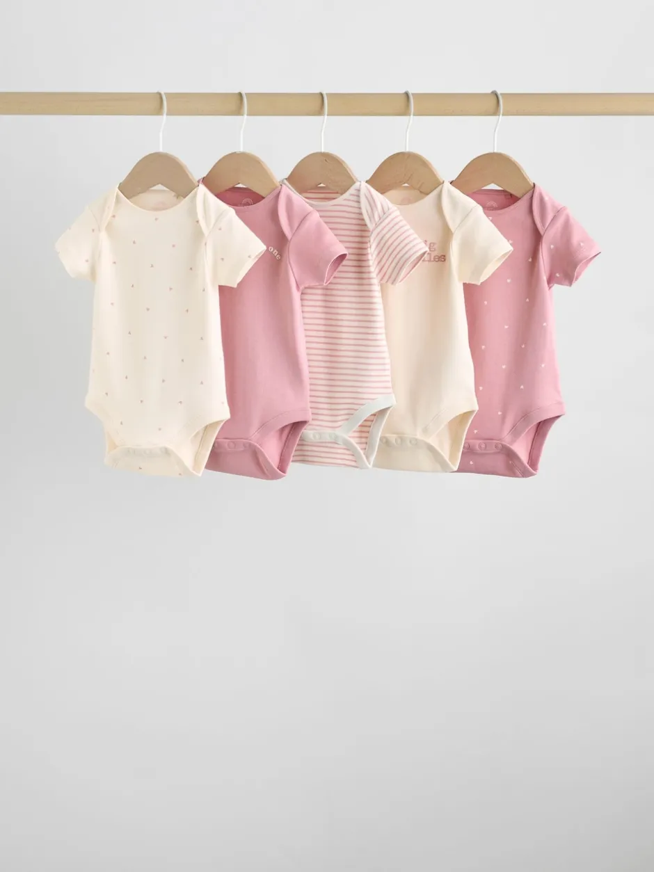 Next Coeur rose – Bébé Manches courtes Bodysuits 5 Pack Clearance
