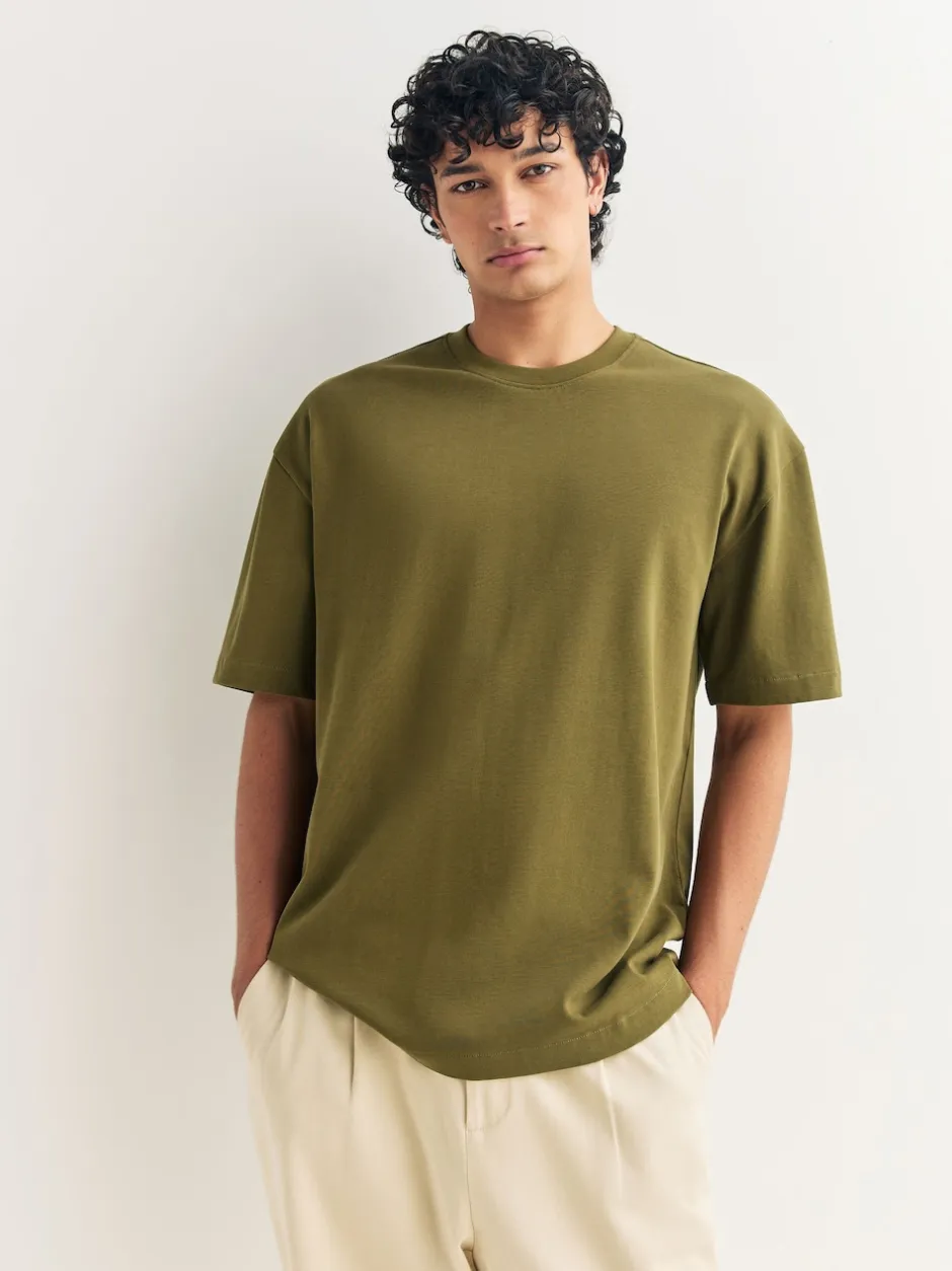 Next – Coupe ample – T-shirt épais 3 Pack Vert olive/gris glace/orange rouille Online